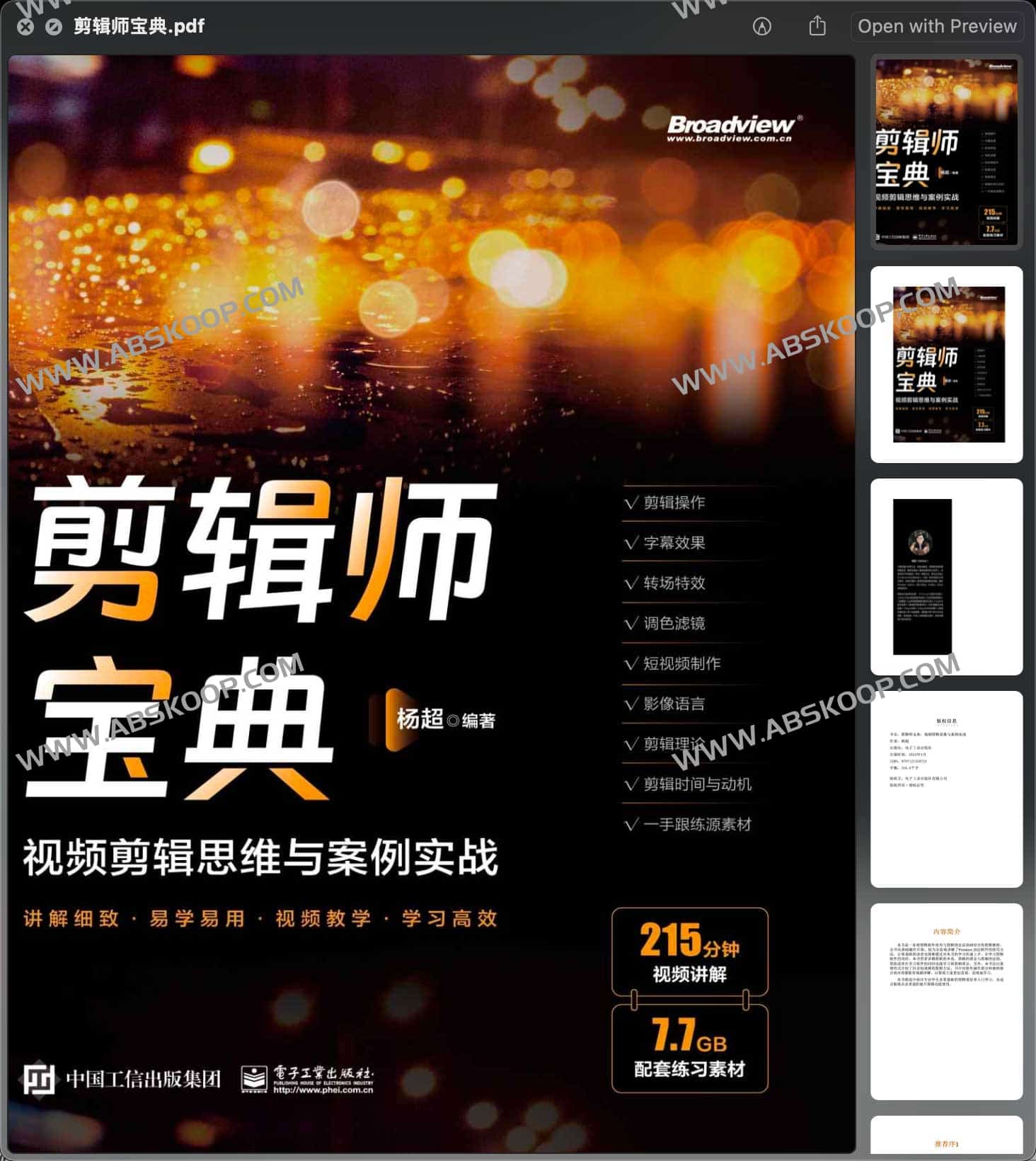 剪辑师宝典 视频剪辑思维与案例实战,pdf、mobi、epub和azw3格式电子书资源,阿里云盘和夸克网盘资源下载,