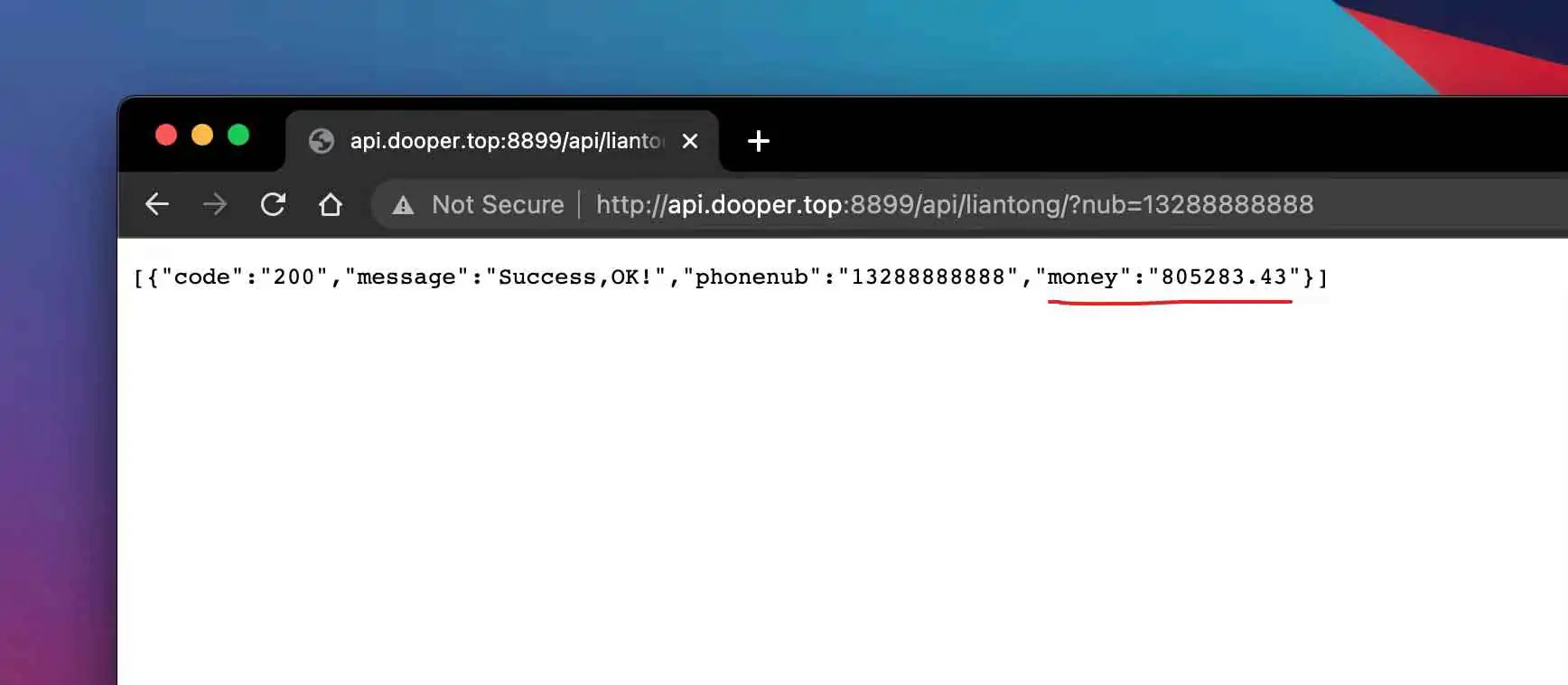 http://api.dooper.top:8899/api/liantong/?nub=13288888888