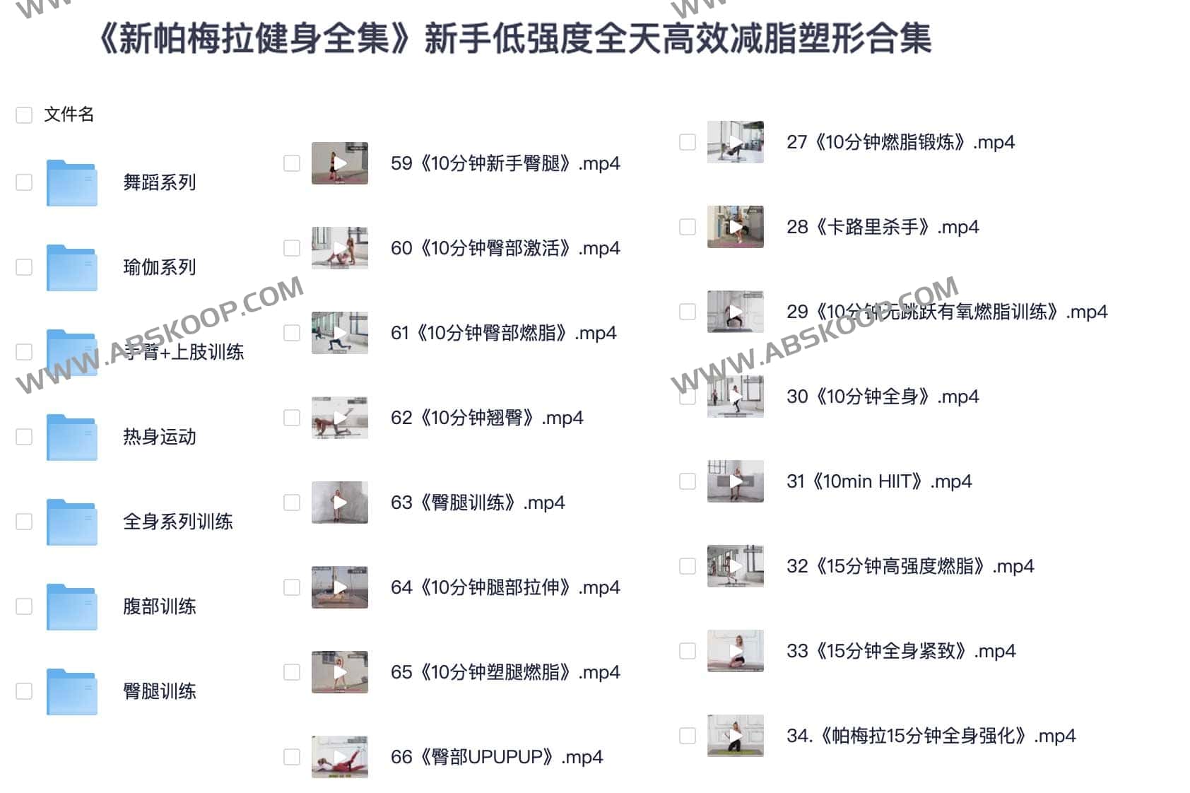 新帕梅拉健身全集,新手低强度全天高效减脂塑形合集,夸克网盘资源下载。