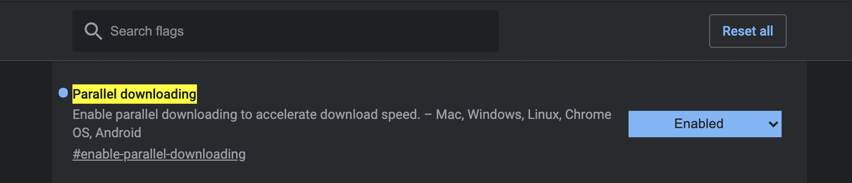 地址栏输入并回车:chrome://flags/#enable-parallel-downloading