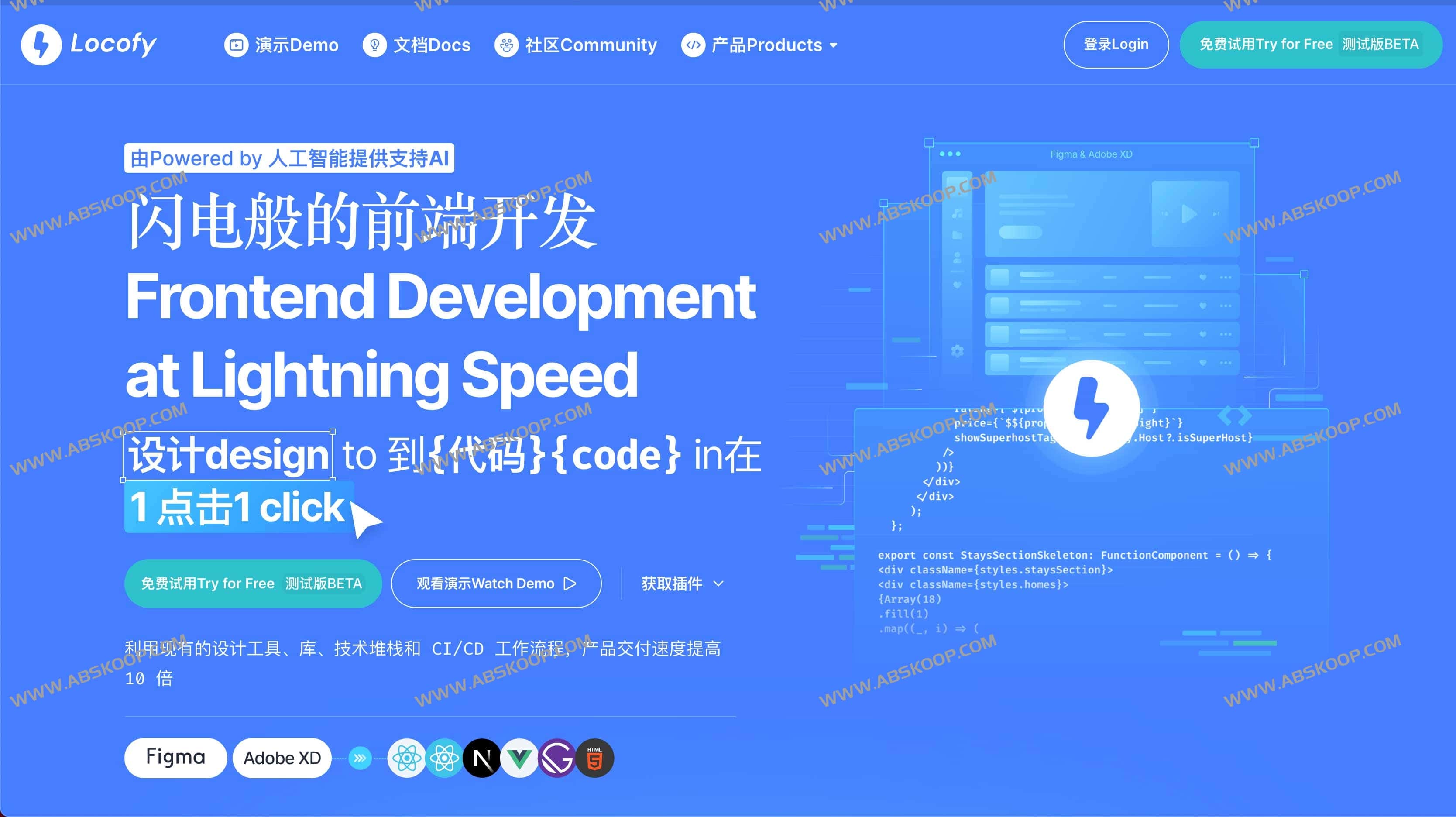 Locofy是一款专门为前端开发人员设计的AI工具,推出的一款 Lightning产品,利用AI一键将 Figma 设计转换为前端代码,工具可将 Figma 和 AdobeXD 原型设计转化为适用于移动应用程序和 Web 的可投入生产的前端代码,利用现有的设计工具、技术堆栈和工作流程,将产品的交付速度提高 5-10 倍,从而提高生产力和速度。Lightning 是一款基于该平台的大型设计模型 (LDM) 构建的产品,其灵感来自 OpenAI 首创的法学硕士概念。