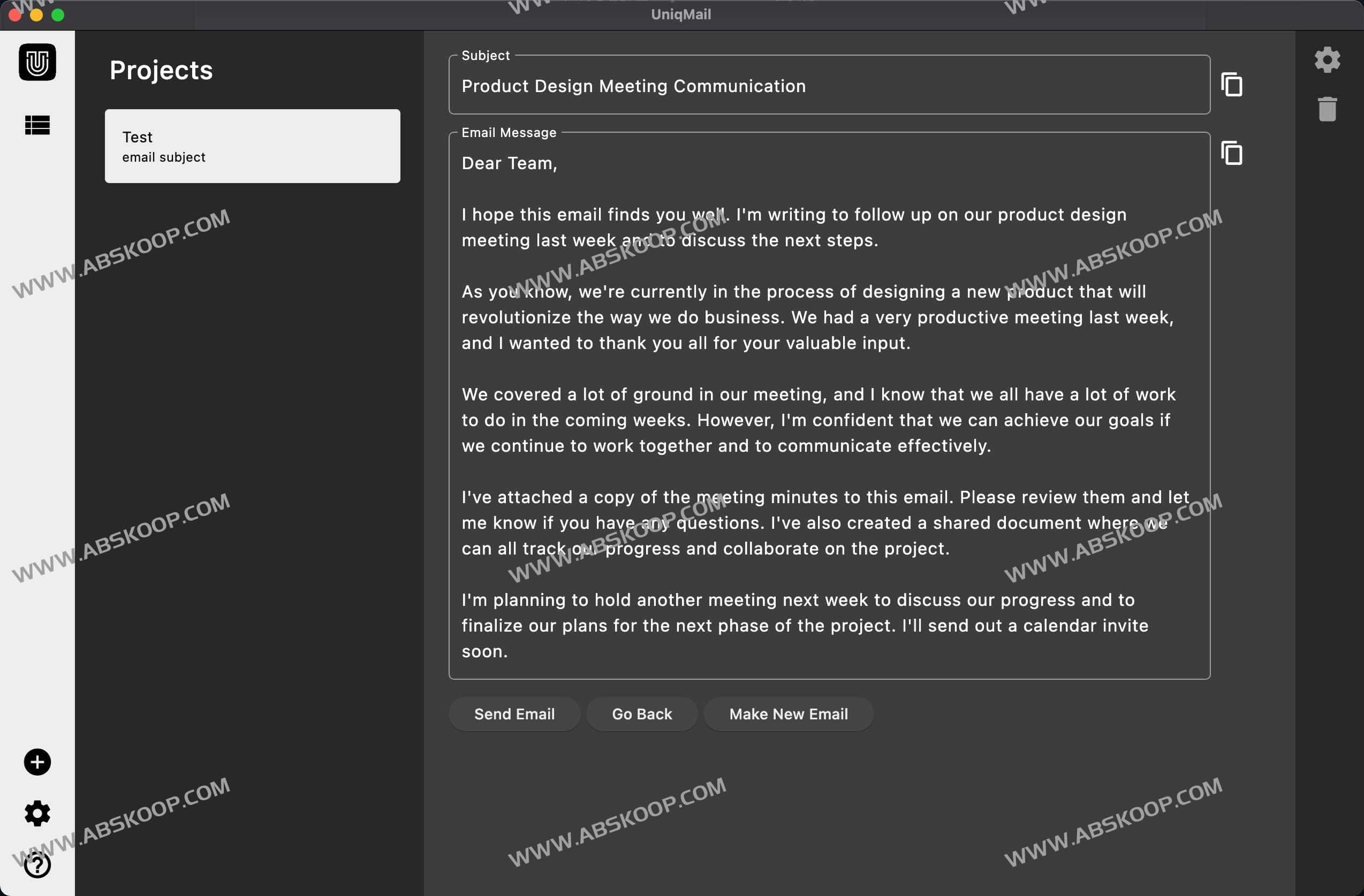 UniqMail是一款免费的AI电子邮件工具,利用最新的人工智能模型创建个性化电子邮件,用户只需要输入邮件描述,AI即可帮助撰写邮件内容,从离线起草到一键发送一气呵成,非常适用于个性化邮件营销、业务沟通等场景。与其他产品不同之处在于用户可以根据项目需求进行邮件设置,并集成自己的OpenAI密钥或者Google Gemini API 密钥,实现个性化的邮件发送,直接发送邮件避免SPAM过滤。UniqMail支持网页版、MacOS和Windows操作系统,Linux版本即将推出,最重要的是,UniqMail完全免费,无需订阅或隐藏费用。
