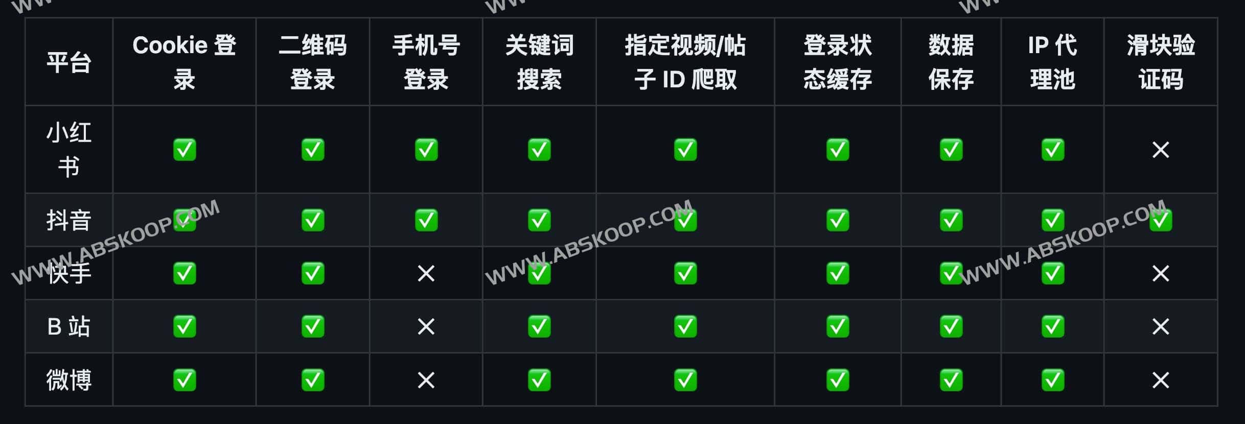 MediaCrawler功能列表
