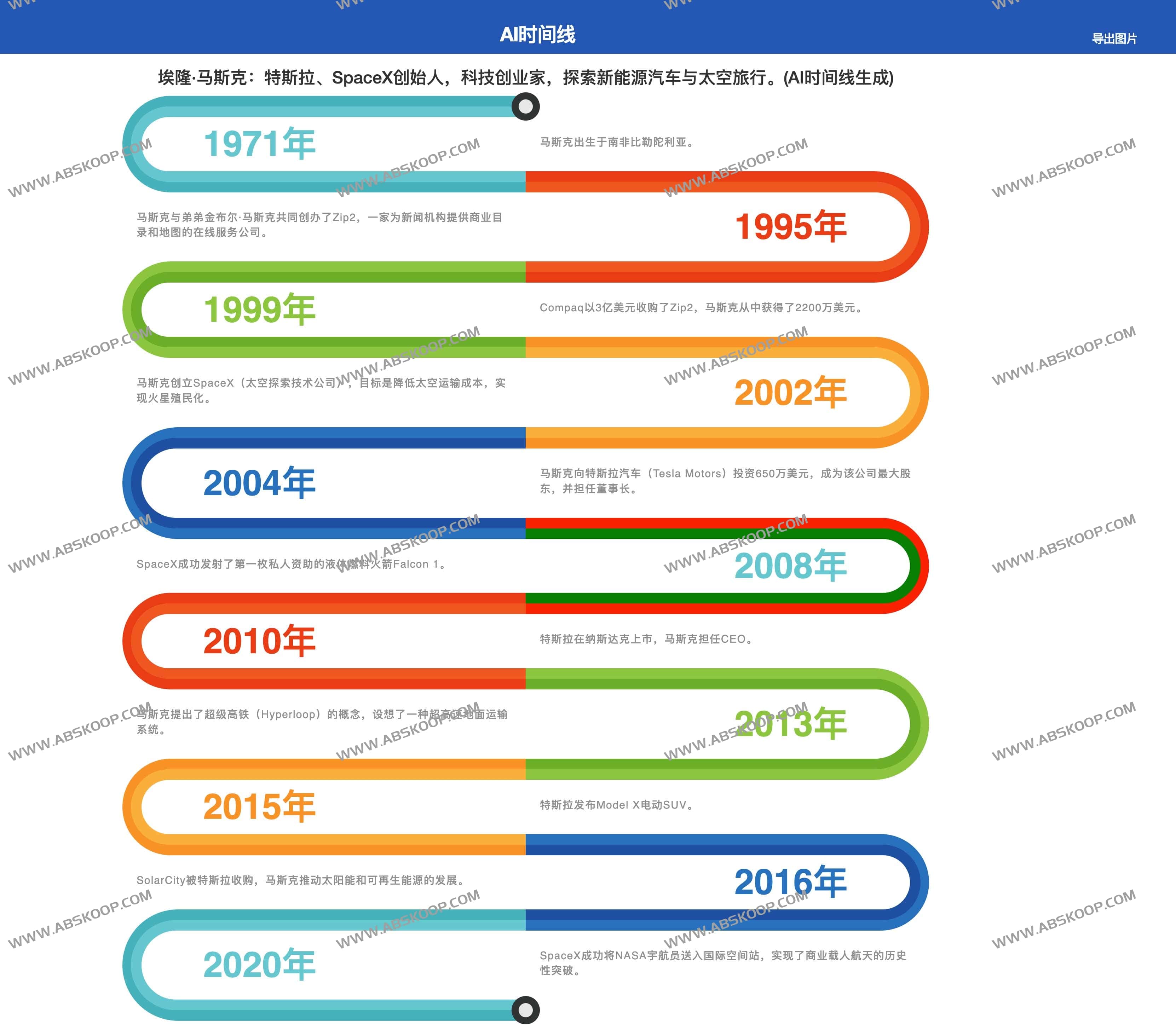 AI时间线是一款基于AI将某个事件以时间线的方式产出的AI网站,根据关键词生成时间线的在线AI工具,是作者在过年期间利用半天时间开发出来的AI产品,前端就是html+css+jquery,后端主要就是java、springboot,AI时间线结果支持图片导出。