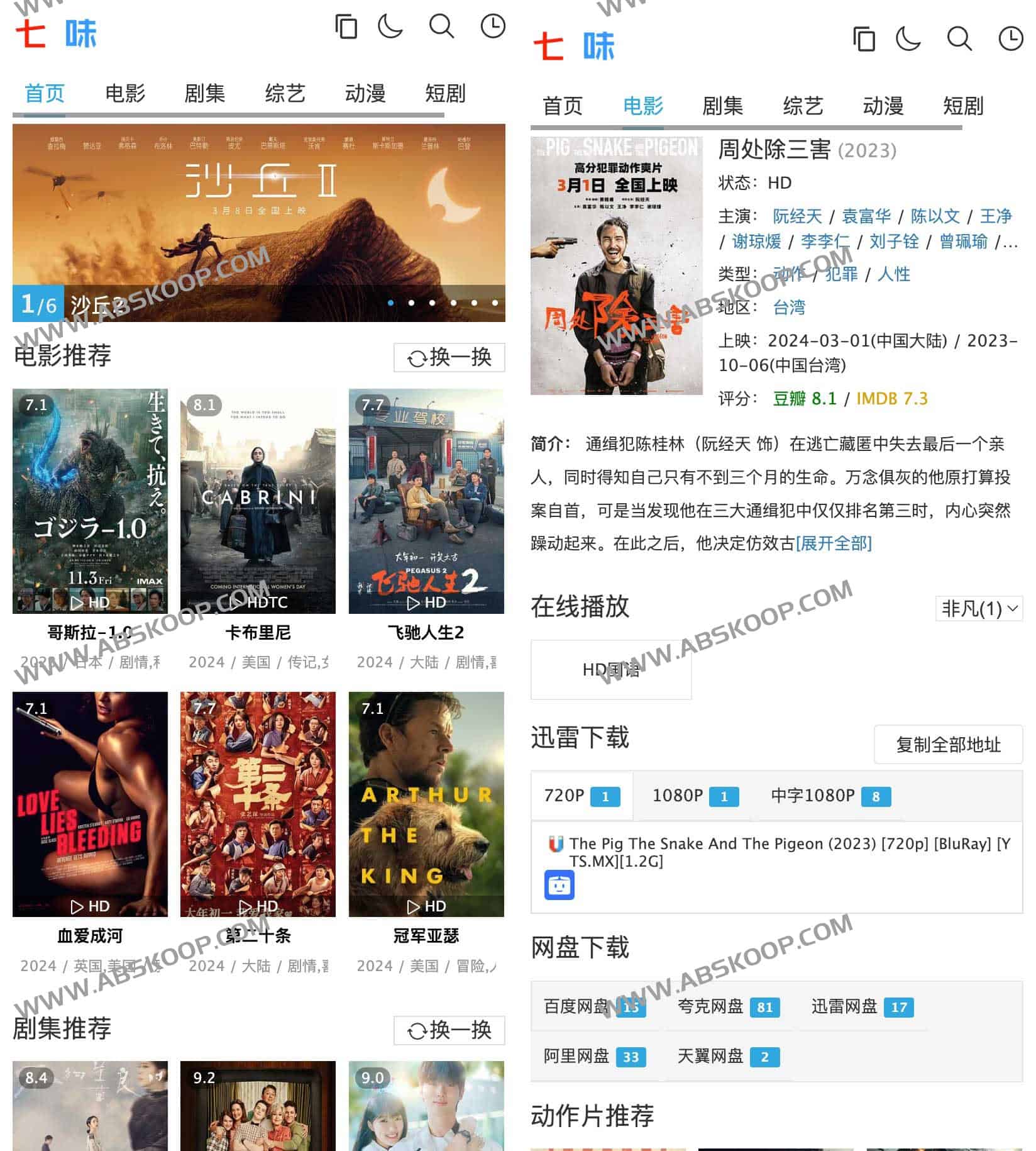 七味是一个在线高清影视网站,和片库差不多,提供国内外的热门的影视资源,例如美剧、韩剧、国内电视剧、等等,可以搜索可以根据标签进行筛选搜索,支持在线播放和磁力下载、网盘资源下载。