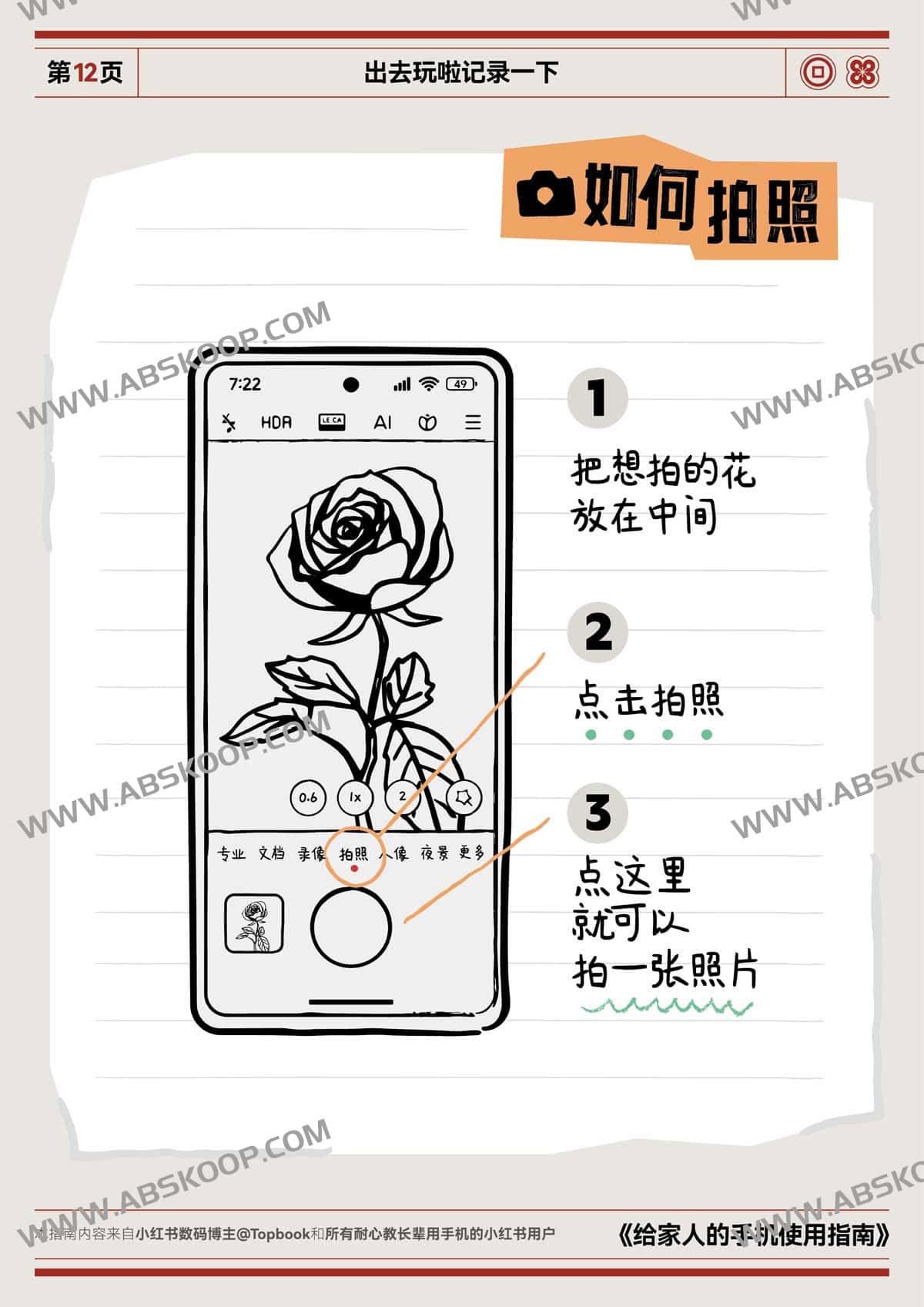 给家人的手机使用指南(A4彩印长边翻页),哪里不会撕下来保存,可以打印,非常详细的图文教学,夸克网盘资源下载。