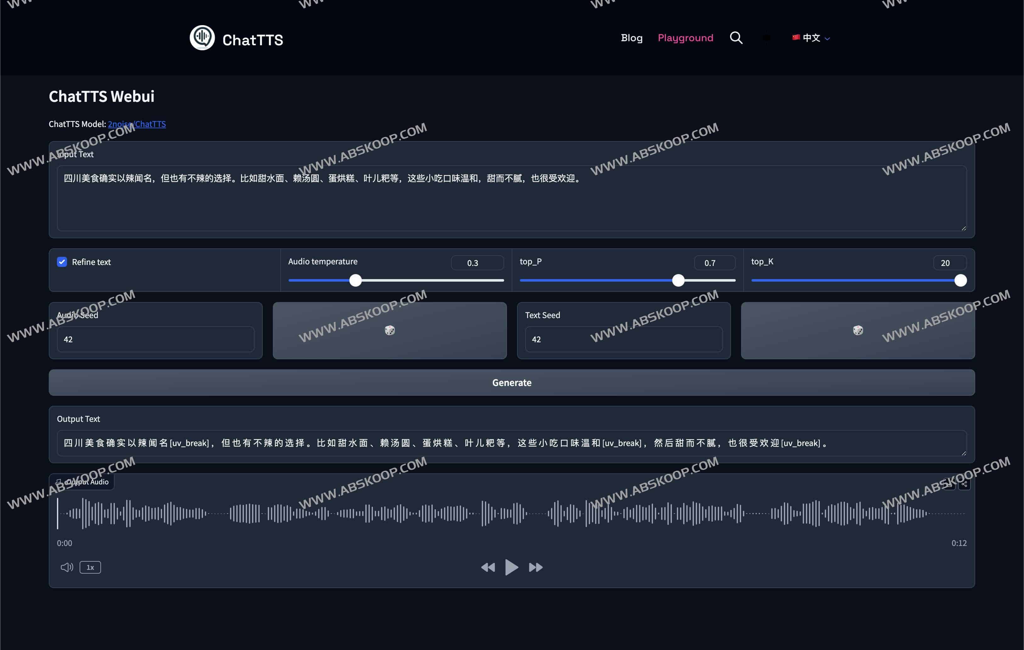 - 对话式 TTS: ChatTTS针对对话式任务进行了优化,实现了自然流畅的语音合成,同时支持多说话人。