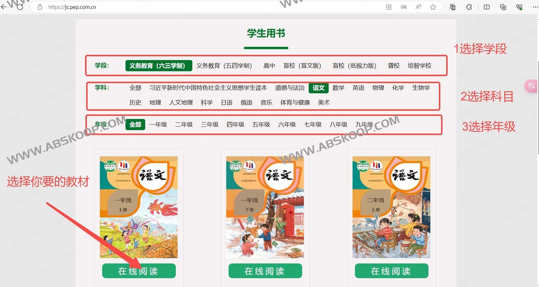 第一步:打开人民教育出版社电子教材地址 【点这打开】