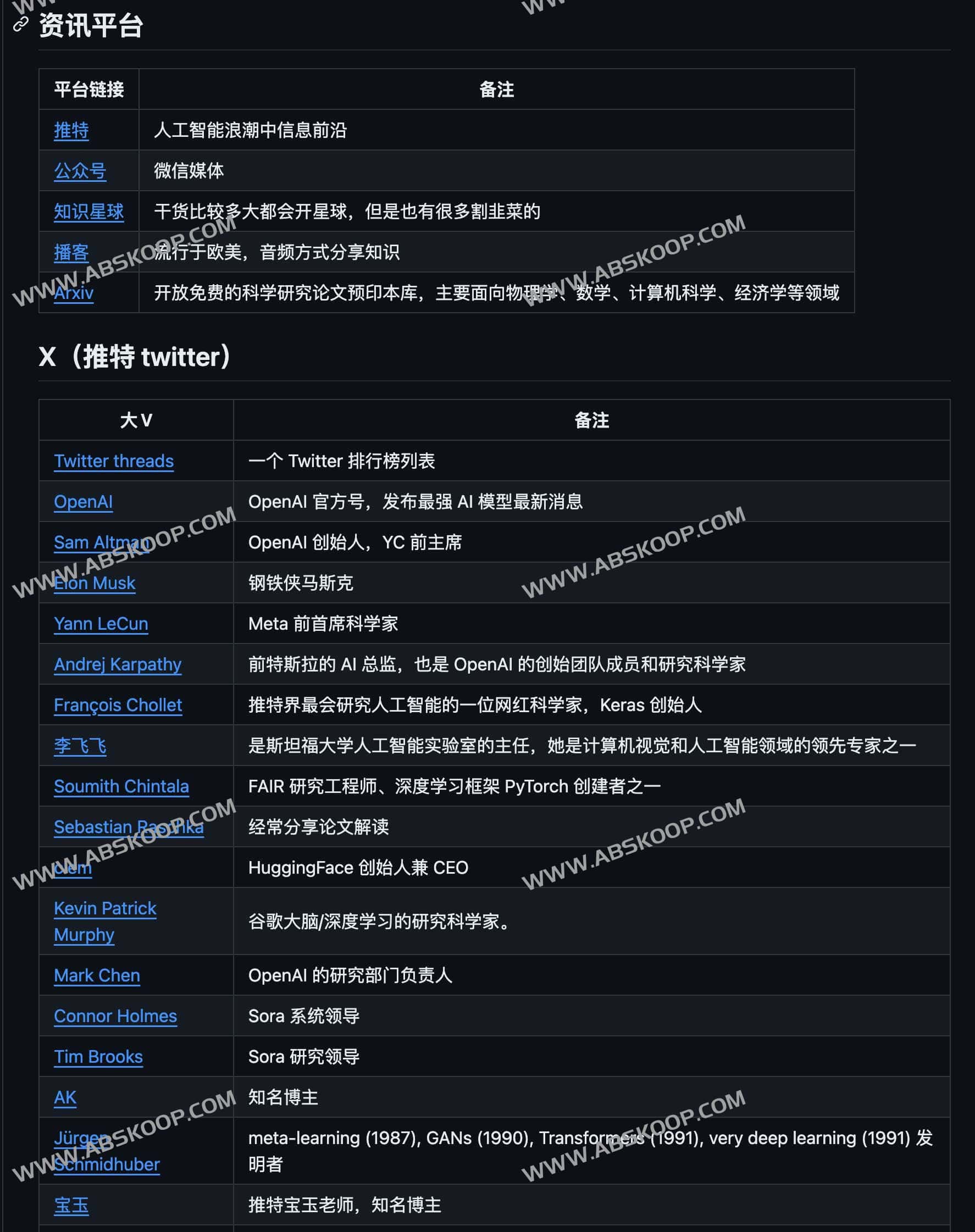 Awesome AISourceHub是一个GitHub开源仓库,仓库收集AI科技领域高质量信息源,聚合全网优质信息源,收集一些有观点、有干货、一手的AI 科技资讯资源,可以帮助你更好地了解和跟踪前沿一手消息,解决信息焦虑,可以起到一个同步信息源的作用,避免信息差和信息茧房。内容包括资讯平台、X/Twitter大V、、公众号、网站、博客、博主等等,都是雨Ai领域相关的。