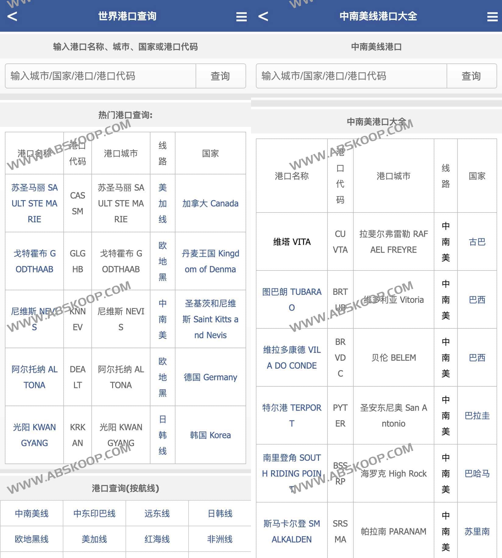 世界港口查询是一款在线世界港口查询、全球港口代码查询工具,世界港口查询系统可通过输入港口城市、港口代码、港口名称或国家中任意一项进行查询,拥有全球2万多个港口数据,包括港口中英文、港口线路、港口地图位置及详细的港口介绍,免注册使用。