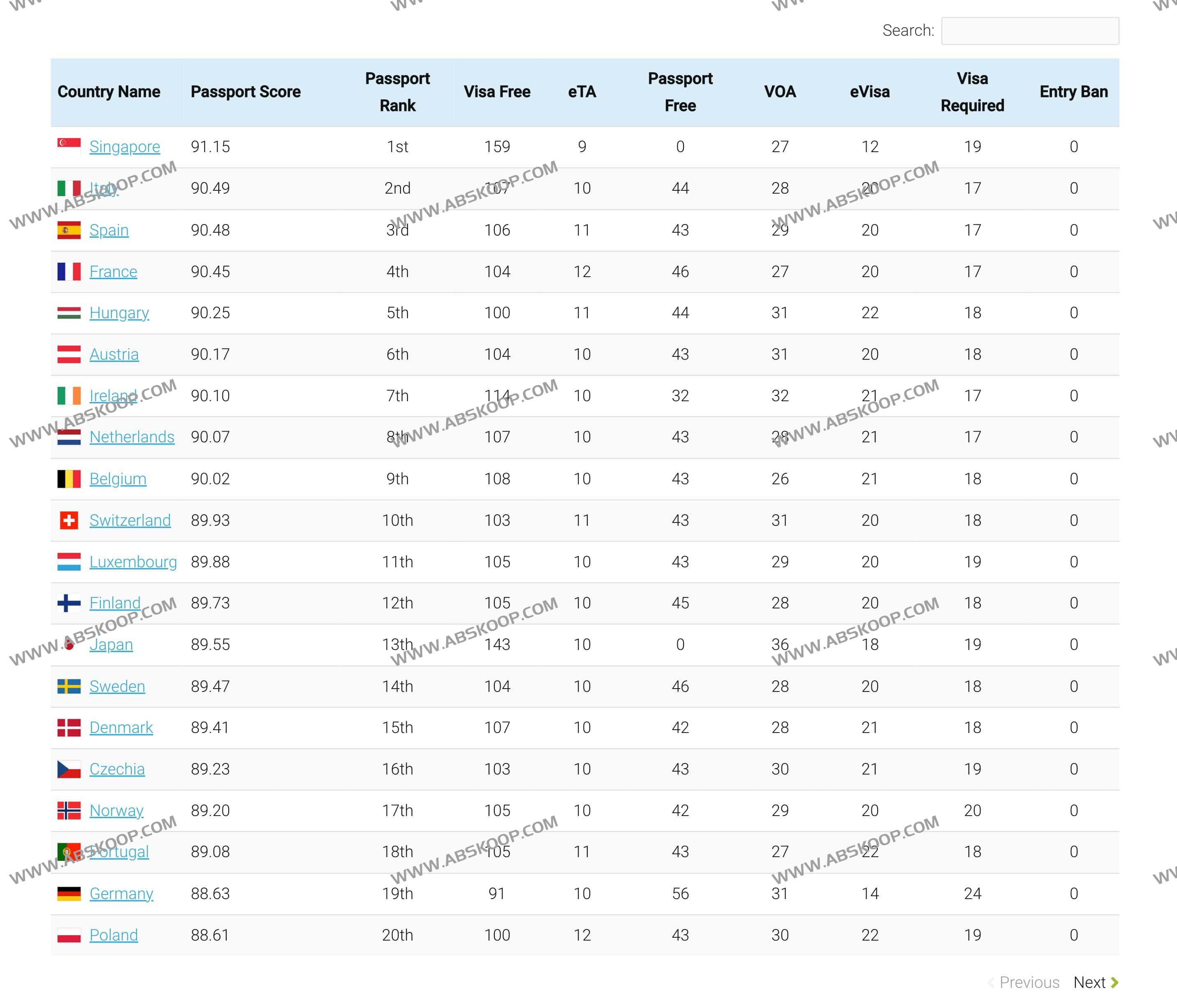 VisaGuide World是一个免费的在线全球签证信息指南网站,提供易于理解的信息以及有关特定世界国家签证的重要新闻和更新,是领先的签证信息网站之一,而VisaGuide世界全球护照指数,一个护照排名系统,它利用称为目的地重要性评分 (DSS) 的因素为每本护照分配唯一的值,根据各种因素对199个国家和地区的护照进行评估和排名,以确定其实力,根据 VisaGuide.World 的数据,新加坡护照是世界上最强大的护照,截至 2024 年 6 月得分为 91.15。