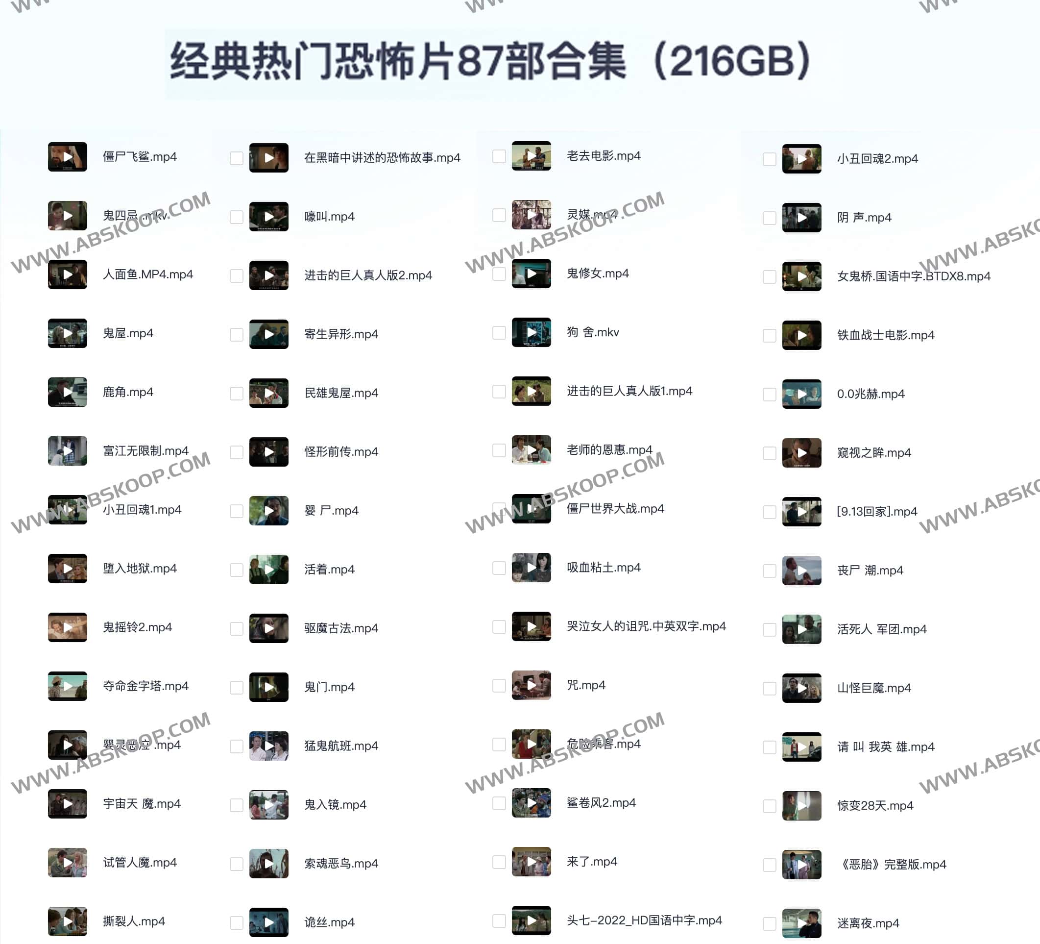 经典热门恐怖片87部合集(216GB),夸克网盘资源下载。