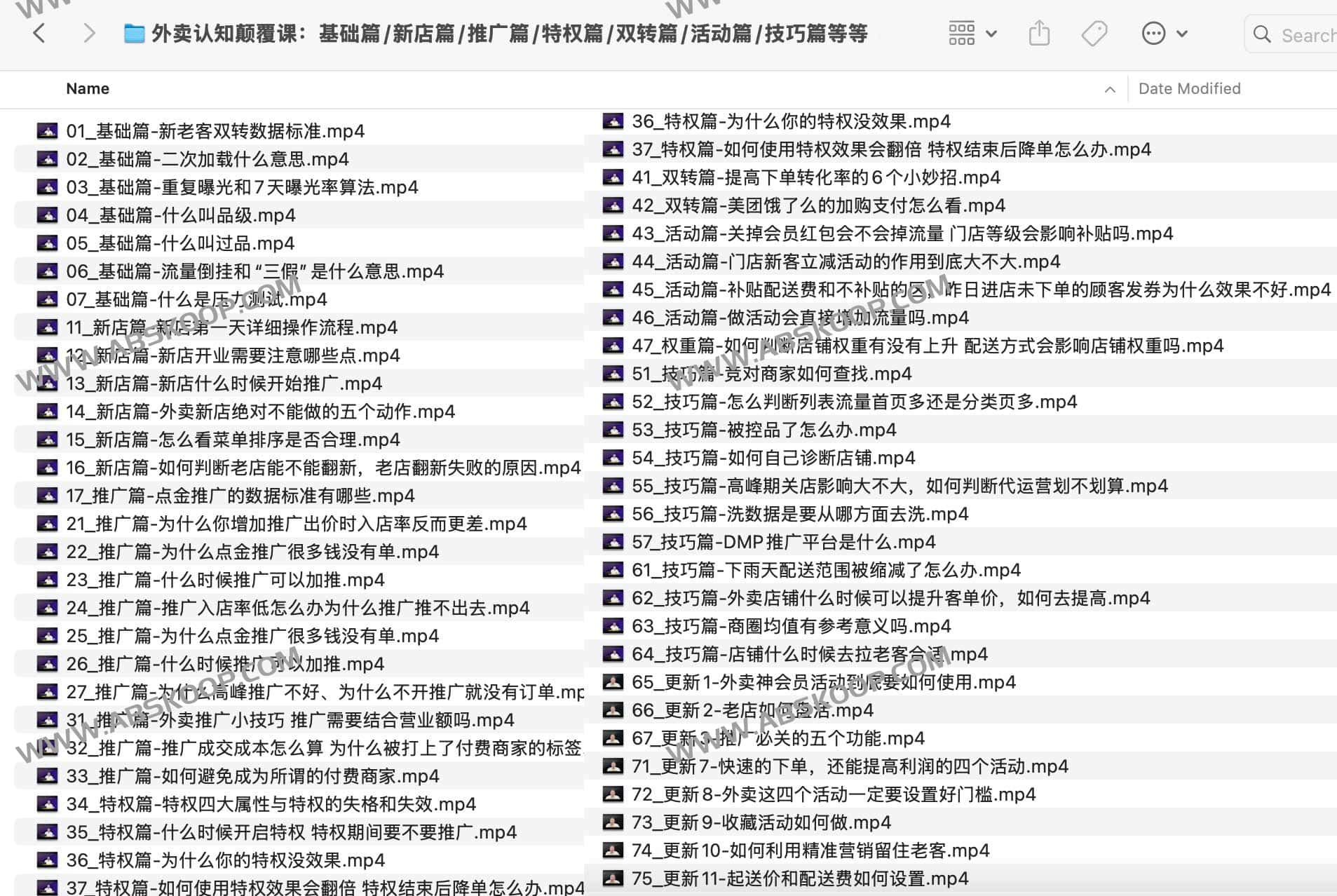 外卖认知颠覆课:基础篇/新店篇/推广篇/特权篇/双转篇/活动篇/技巧篇等等,夸克网盘资源下载。