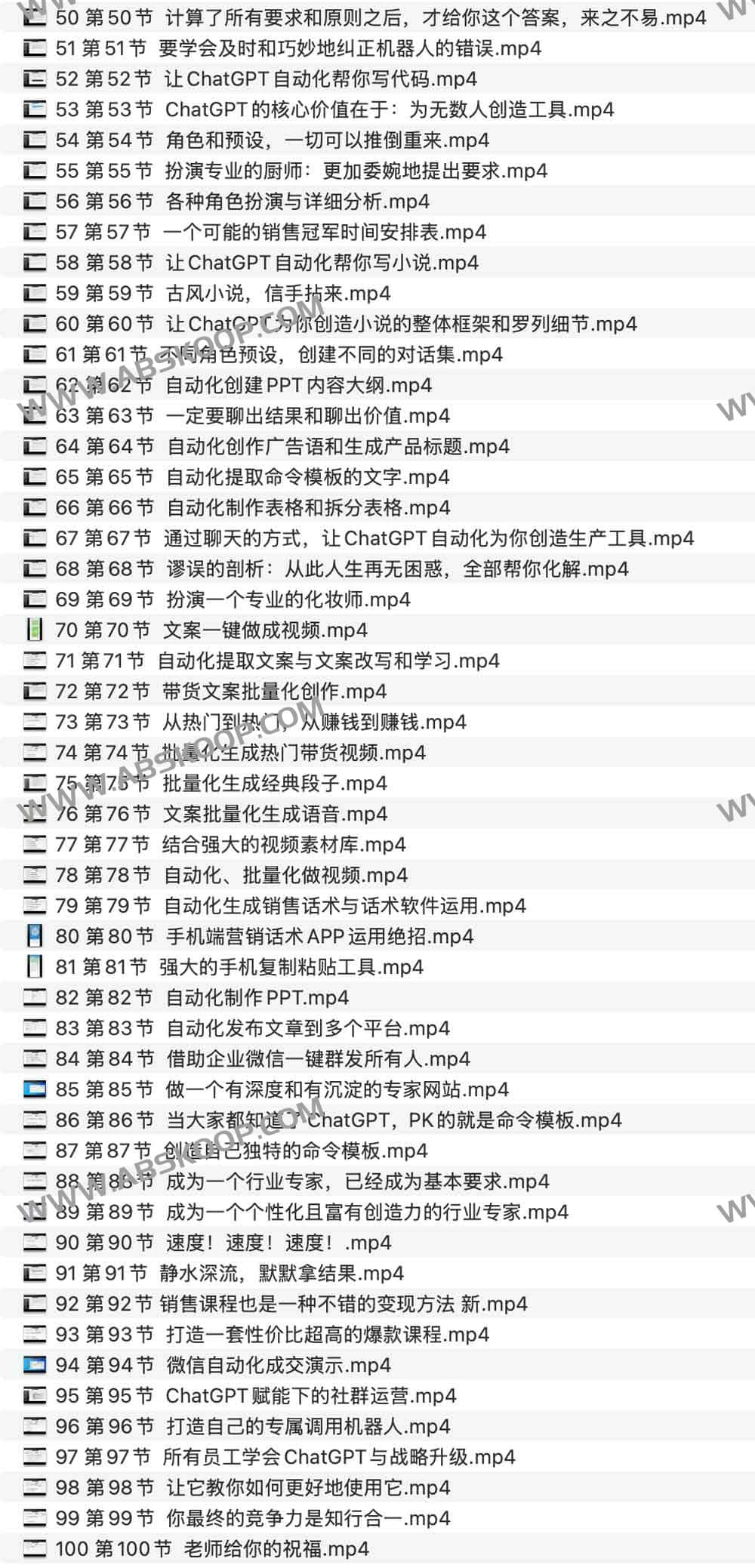 本套课程ChatGPT运营秘诀与变现攻略,ChatGPT使用方法与技巧,本课程由郑俊雅老师主讲,共100讲完整版。很多人只是听说ChatGPT很强大,但是真正等到自己动手用的时候一脸茫然,不知道该怎么高效使用它;本次更新的课程从零教大家如何使用ChatGPT以及如何给ChatGPT下指令等,并通过具体的实际案例教大家如何使用ChatGPT。