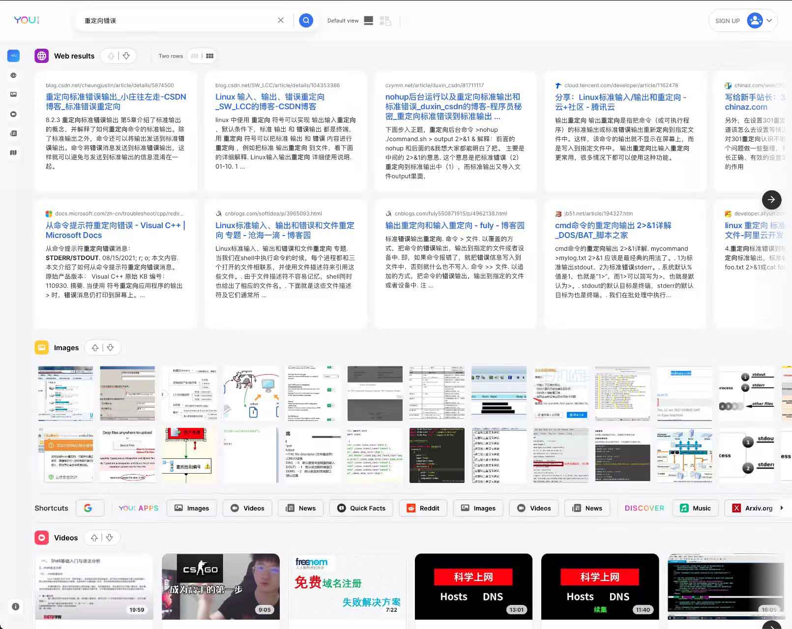 如果你是Chrome过来的用户,那么可能被针对了,在Chrome使用you有各种繁琐的提示,如果你只想简单体验一下,跳过各种操作设置,可以把搜索地址栏这一句“fromSearchBar=true”删掉即可看到搜索结果了