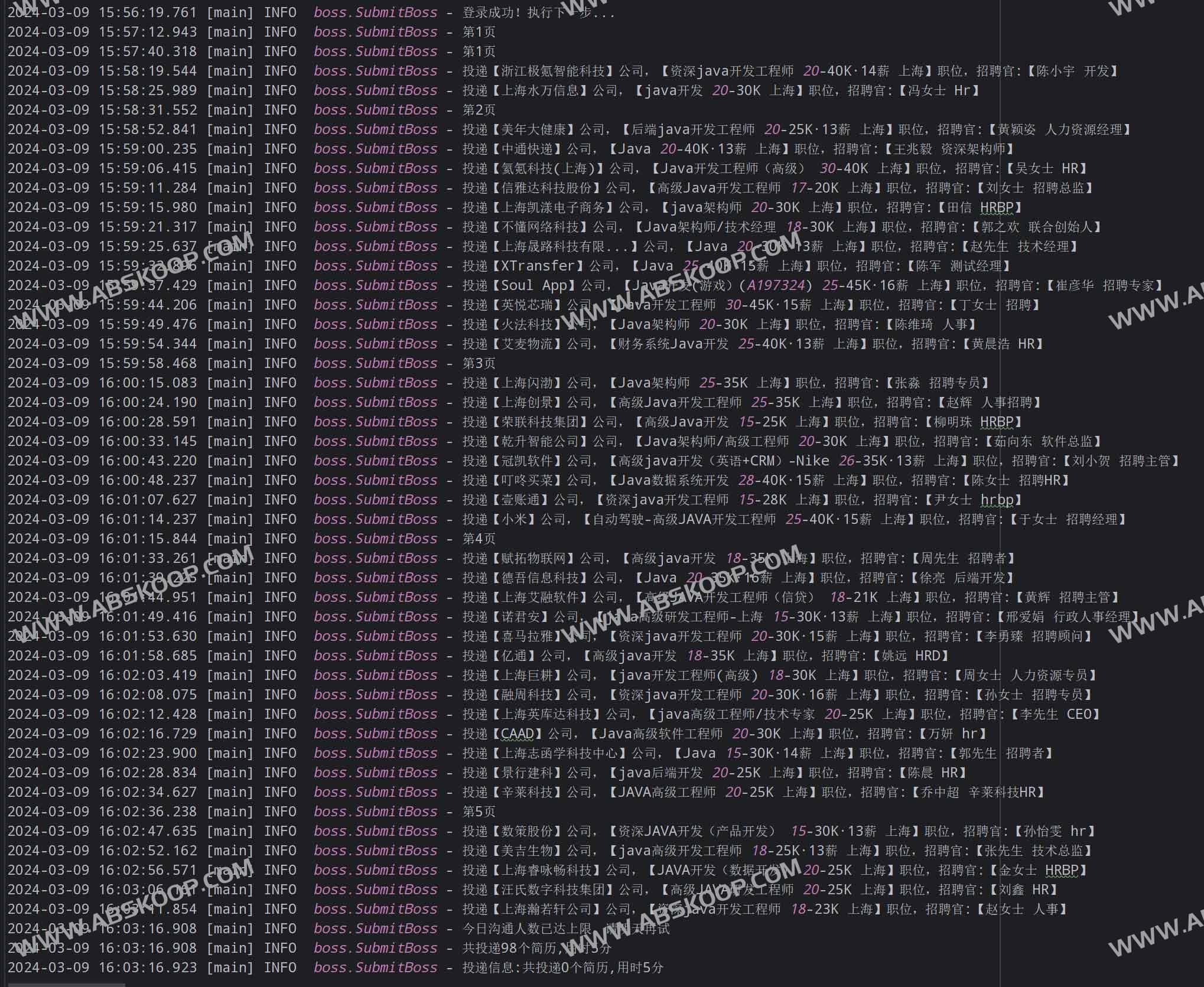 - 智能过滤:剔除不活跃 HR、猎头岗位、超出/低于目标薪资职位。