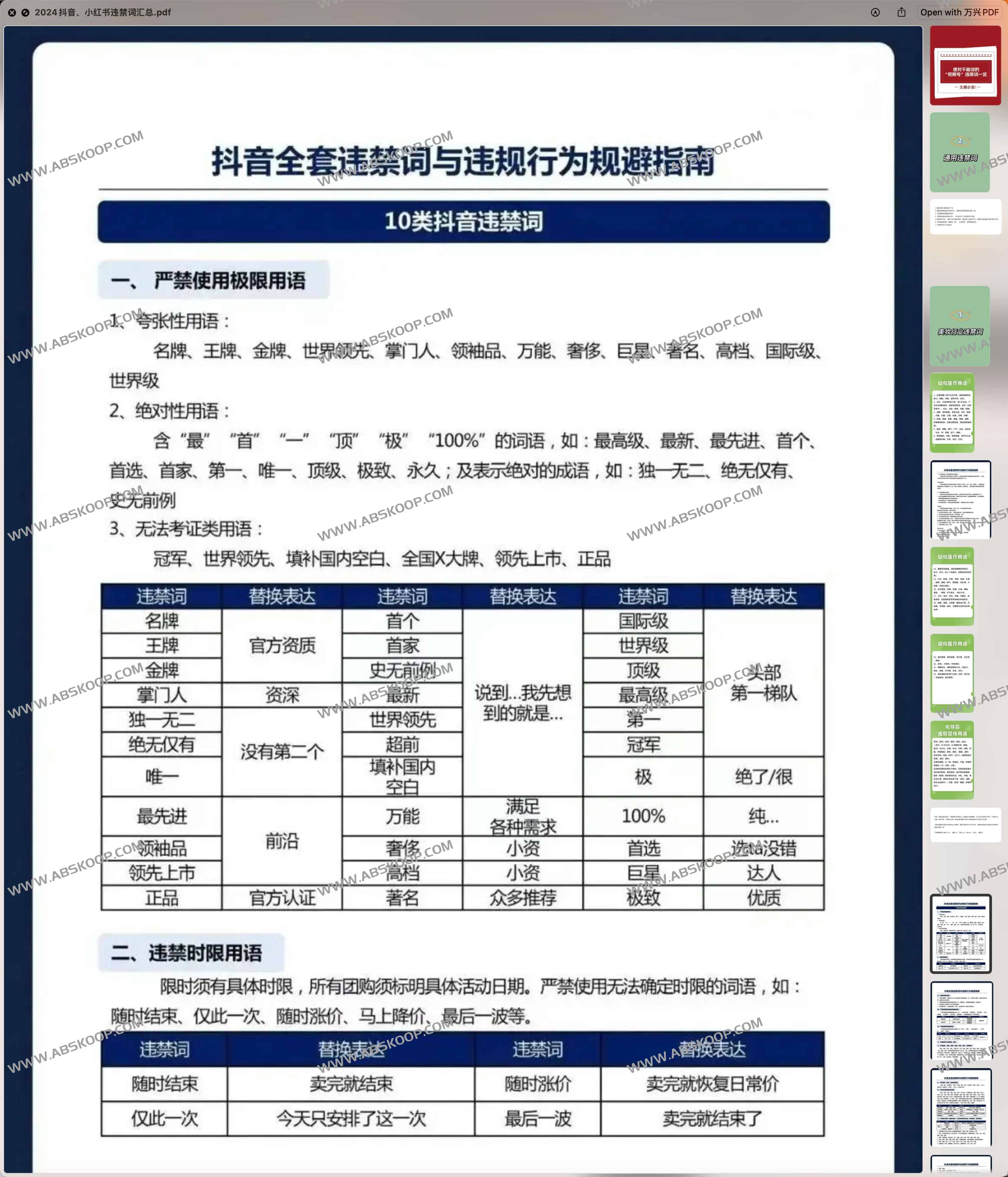 2024抖音 小红书违禁词汇总,抖音全套违禁词与违规行为规避指南,PDF文档资源,夸克网盘资源下载。