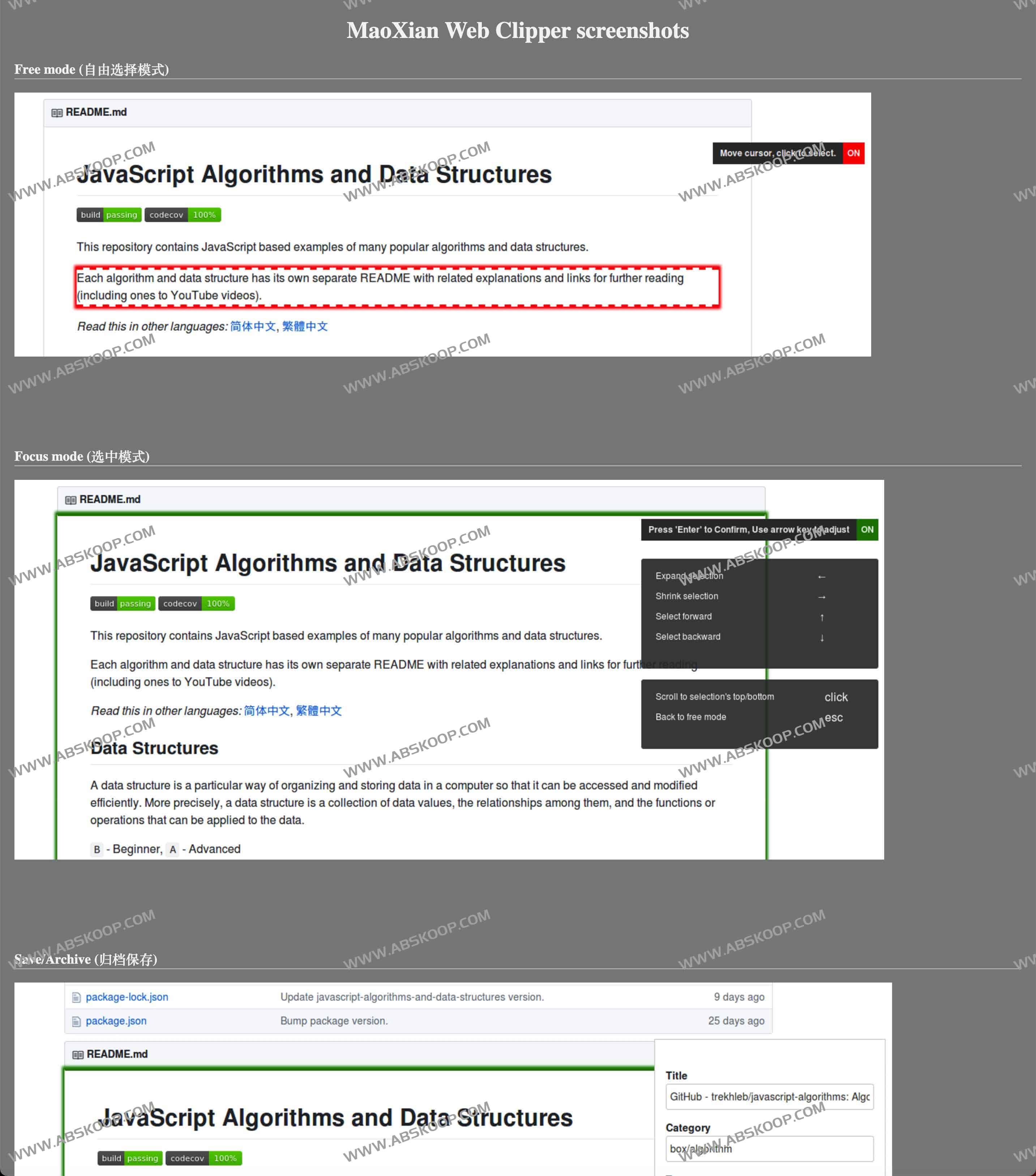 MaoXian Web Clipper是一款免费开源网页裁剪保存工具,工具可以将网页的内容裁剪并保存到本地电脑的浏览器扩展。使用它,你可以避免网站挂了,网址失效,图片失效等问题。 它可以将网页保存为 HTML 格式或 Markdown 格式,图片样式等也会一同保存下来,免注册即可使用。