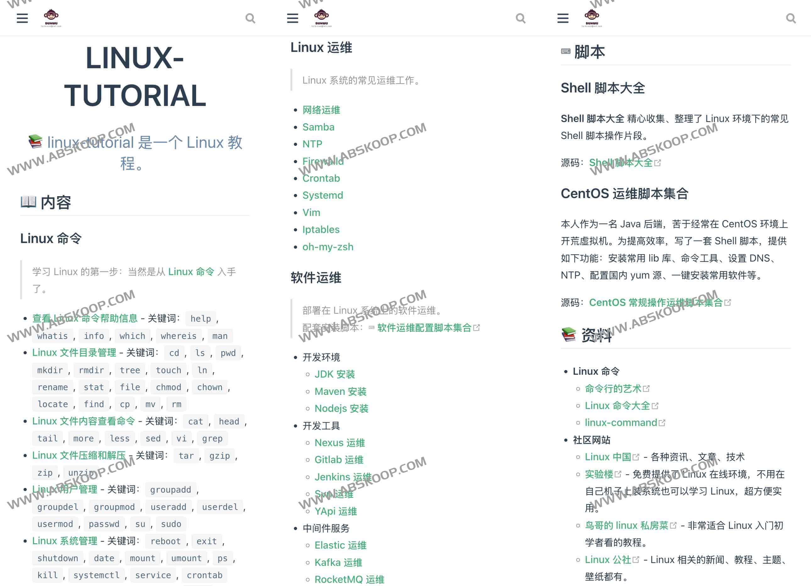 网站:https://dunwu.github.io/linux-tutorial/