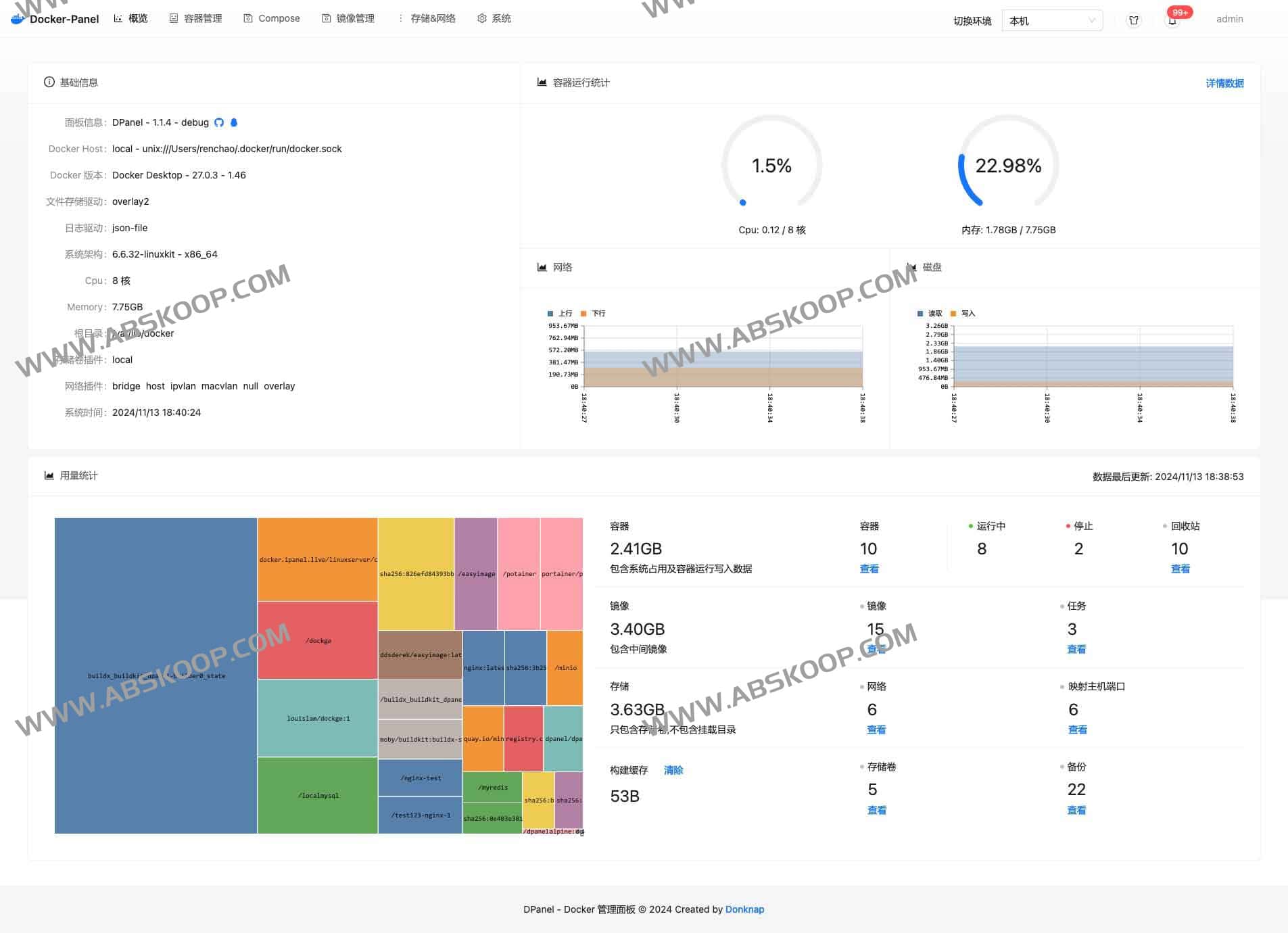 DPanel 是一款开源的 Docker 可视化管理面板,专为简化容器管理而设计,具有全中文界面,使用方便。它以容器方式运行,资源占用极低(镜像约 50M,内存约 20M),无需特权模式,对宿主机无侵入,安全可靠。DPanel 提供全面的功能,包括容器创建与管理、域名绑定、文件管理、网络配置、多种方式的 Compose 任务部署,以及快速构建自定义镜像。适合 NAS 设备、小型服务器等多种场景,是一款轻量级、高效的 Docker 管理工具。