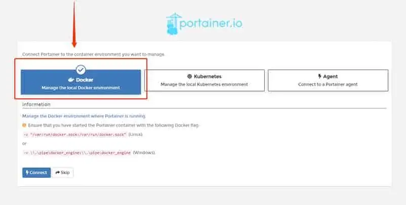 (2) 首次登陆时选择第一个选项,本地管理容器