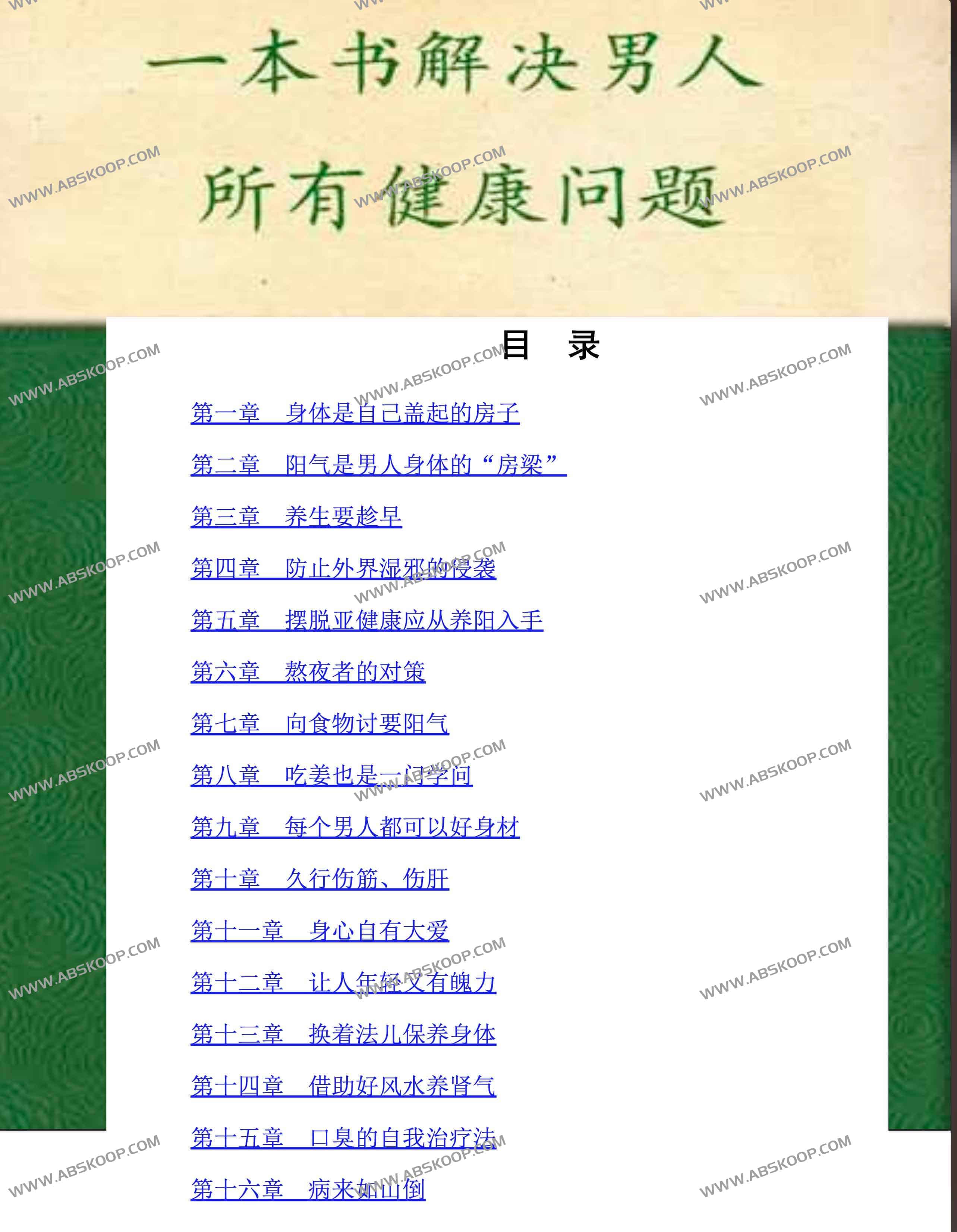 一本书 解决男人所有健康问题-道法自然 PDF、epub和mobi文件,夸克网盘和PikPak网盘。