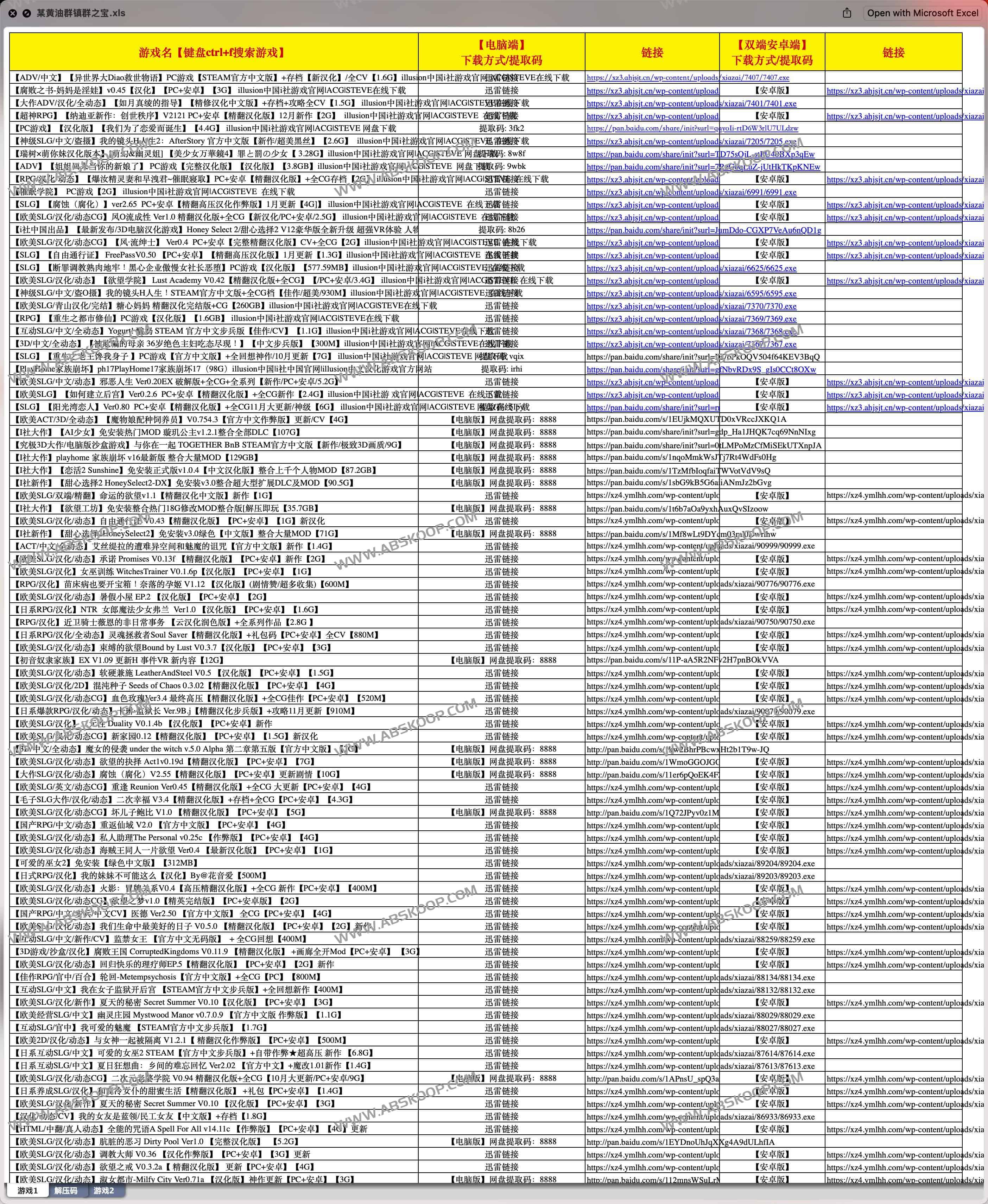 某黄油群镇群之宝 黄油游戏,是一份excel文档,上面整理很多安卓和PC电脑端的黄油游戏资源,感兴趣的同学可以下载试玩体验。