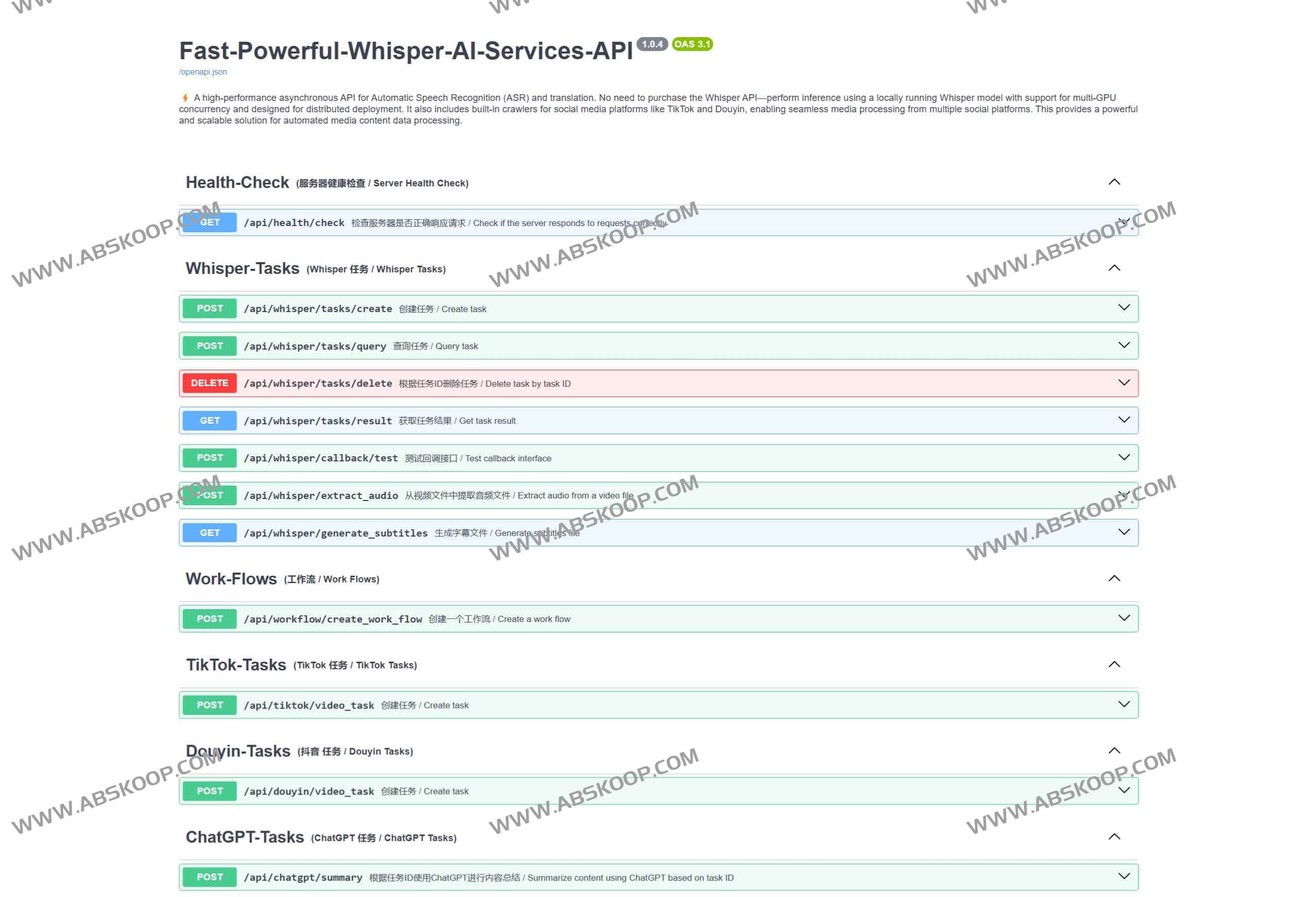 GitHub:https://github.com/Evil0ctal/Fast-Powerful-Whisper-AI-Services-API