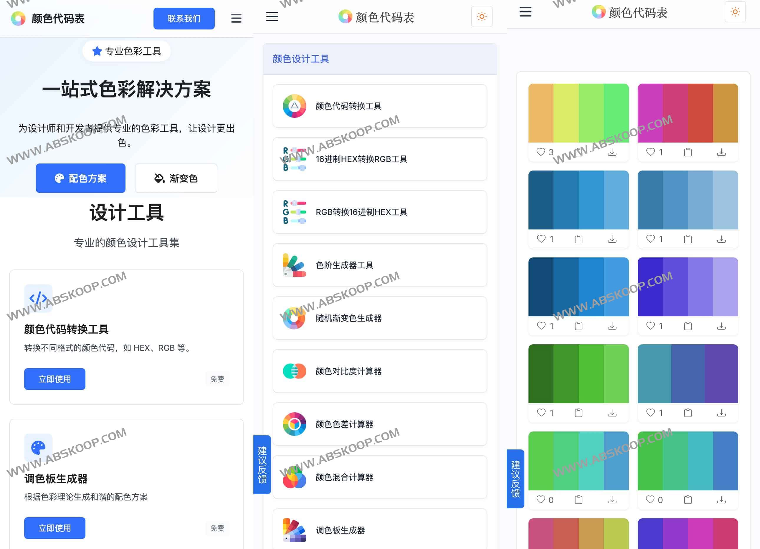 颜色代码表是一个专业的在线颜色代码转换和配色工具网站,旨在帮助设计师、开发者和色彩爱好者轻松管理和应用色彩。它提供全面的颜色代码转换工具和色彩对照表,支持 HEX、RGB、CMYK 等国际标准颜色格式的转换、查询和对比计算,还包括渐变色生成和随机颜色生成器等功能。该网站提供一站式色彩解决方案,其配色方案生成算法可根据用户设置生成最佳配色,也支持用户使用调色板工具自由创作。工具支持 HEX、RGB、HSL、CMYK 等多种颜色格式的随时切换和转换,并提供一键复制和导出功能。用户可以将配色方案保存到浏览器端,并导出为 CSS、图片等多种格式。网站还提供对比度检查工具,严格遵循 WCAG 2.1 标准,以确保配色方案满足无障碍标准。目前,该网站暂不支持 API 接口调用和团队协作功能,但未来将视用户需求进行开发。