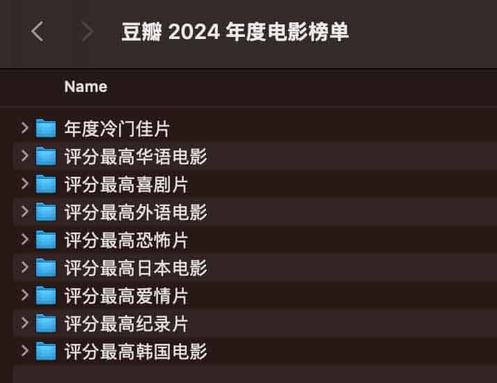 豆瓣 2024 年度电影榜单,包含评分最高华语电影、评分最高外语电影、年度冷门佳片、评分最高日本电影、评分最高韩国电影、评分最高喜剧片、评分最高爱情片、评分最高恐怖片、评分最高纪录片,夸克网盘整理。