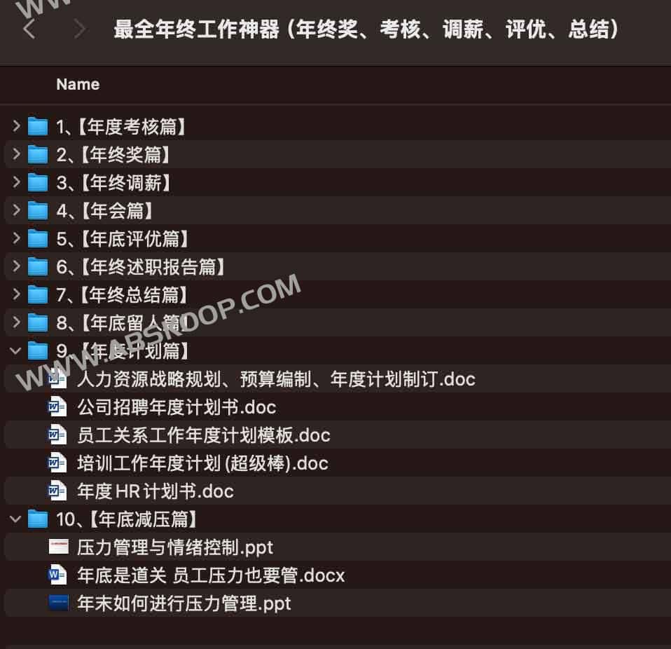最全年终工作神器(年终奖、考核、调薪、评优、总结),包含ppt、PDF、doc等等文档,克网盘资源。