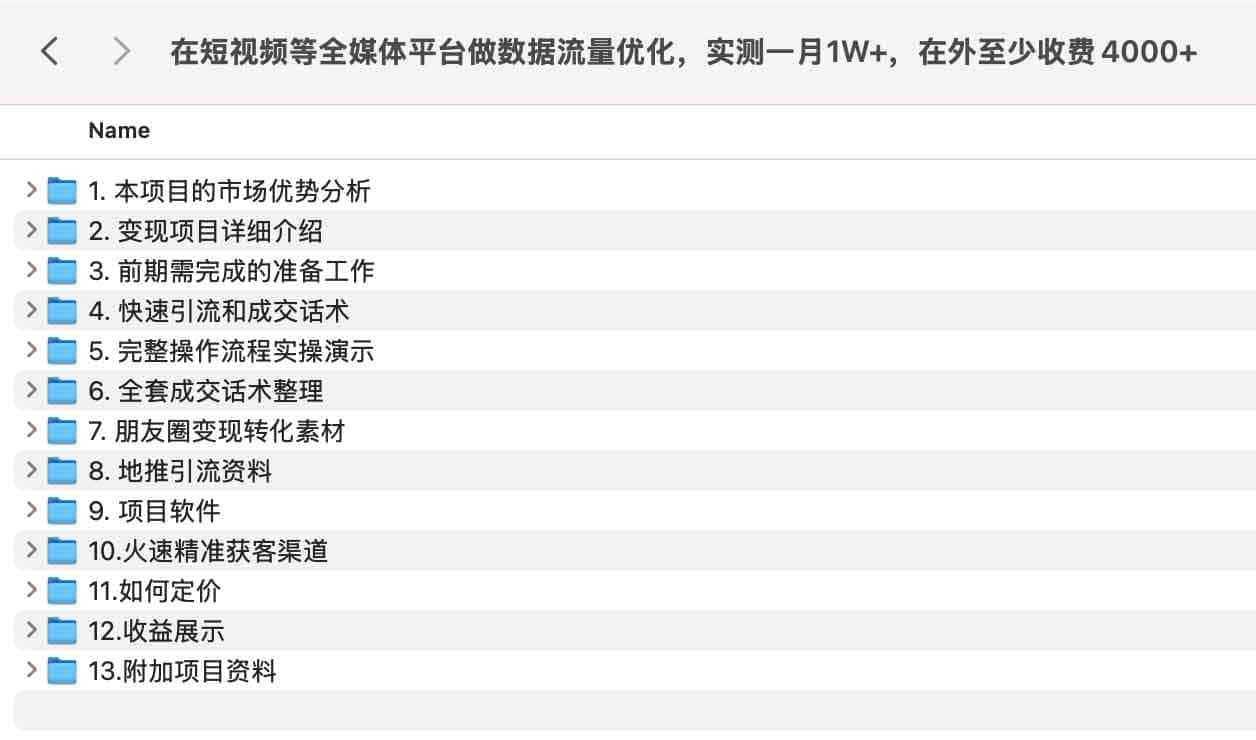 在短视频等全媒体平台做数据流量优化,实测一月1W+,在外至少收费4000+,夸克网盘课程。