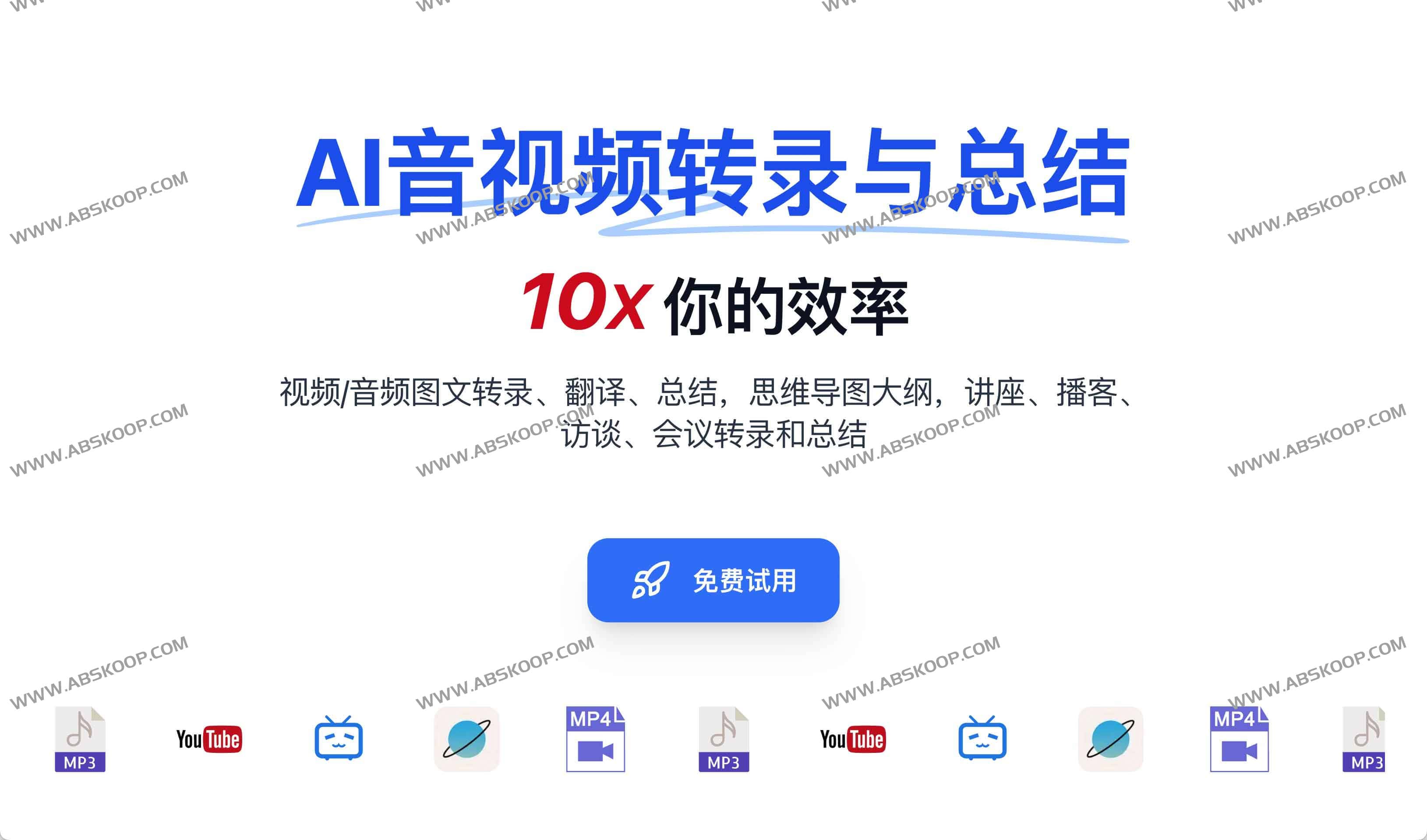 - 主流在线音视频解析:支持 YouTube、BiliBili、小宇宙等主流平台内容解析,无需下载;同时也支持本地音视频文件上传。我们正在持续扩展更多平台支持,敬请期待!