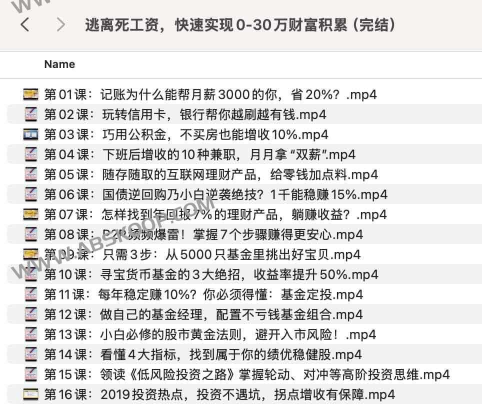 逃离死工资,工薪族快速实现0-30万财富积累(完结),适合白领、月光族的16堂使用理财课,夸克网盘课程。