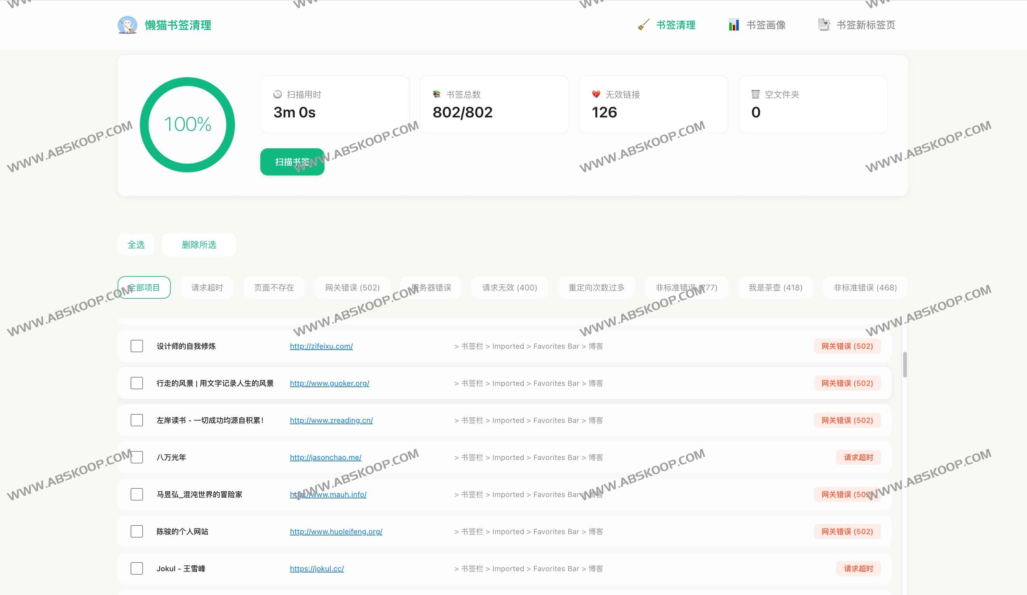 官网:https://www.ainewtab.app/LazyCat-Bookmark-Cleaner/zh-cn/