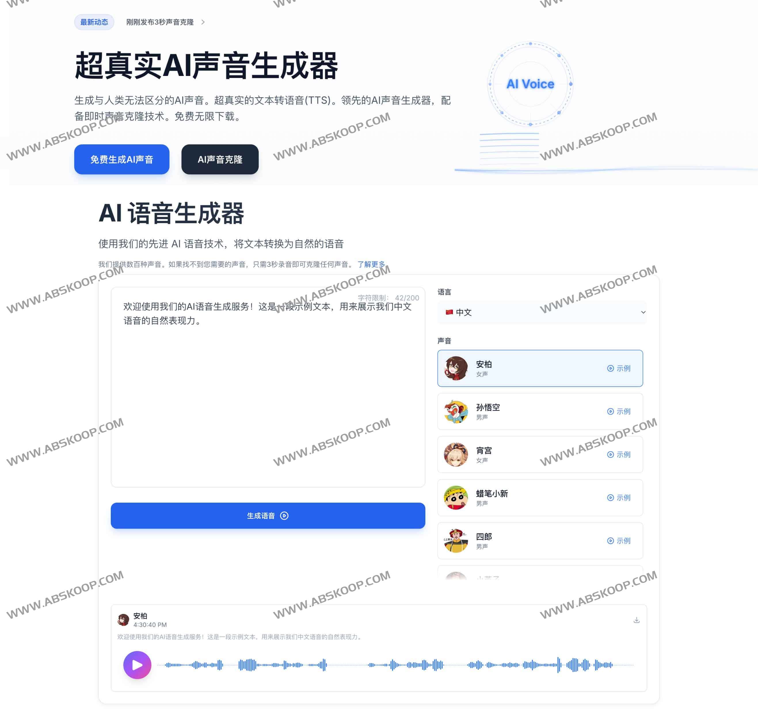 AnyVoice 是一款功能强大的超真实AI语音生成器,通过先进的文本转语音(TTS)技术,将文本高效转换为与真人声音无法区分的自然语音。用户可以使用其即时声音克隆功能,通过仅需3秒的录音创建专属AI声音。平台支持中文、英语、日语和韩语等多种语言,并提供母语级别的发音和情感表达,同时允许个性化定制声音的音调、语速和风格。适合内容创作、教育、商业配音以及娱乐制作等场景,AnyVoice 界面简洁、操作便捷,生成速度快,且输出高品质音频,满足从初学者到专业人士的需求,是提升内容吸引力和生产效率的理想工具。