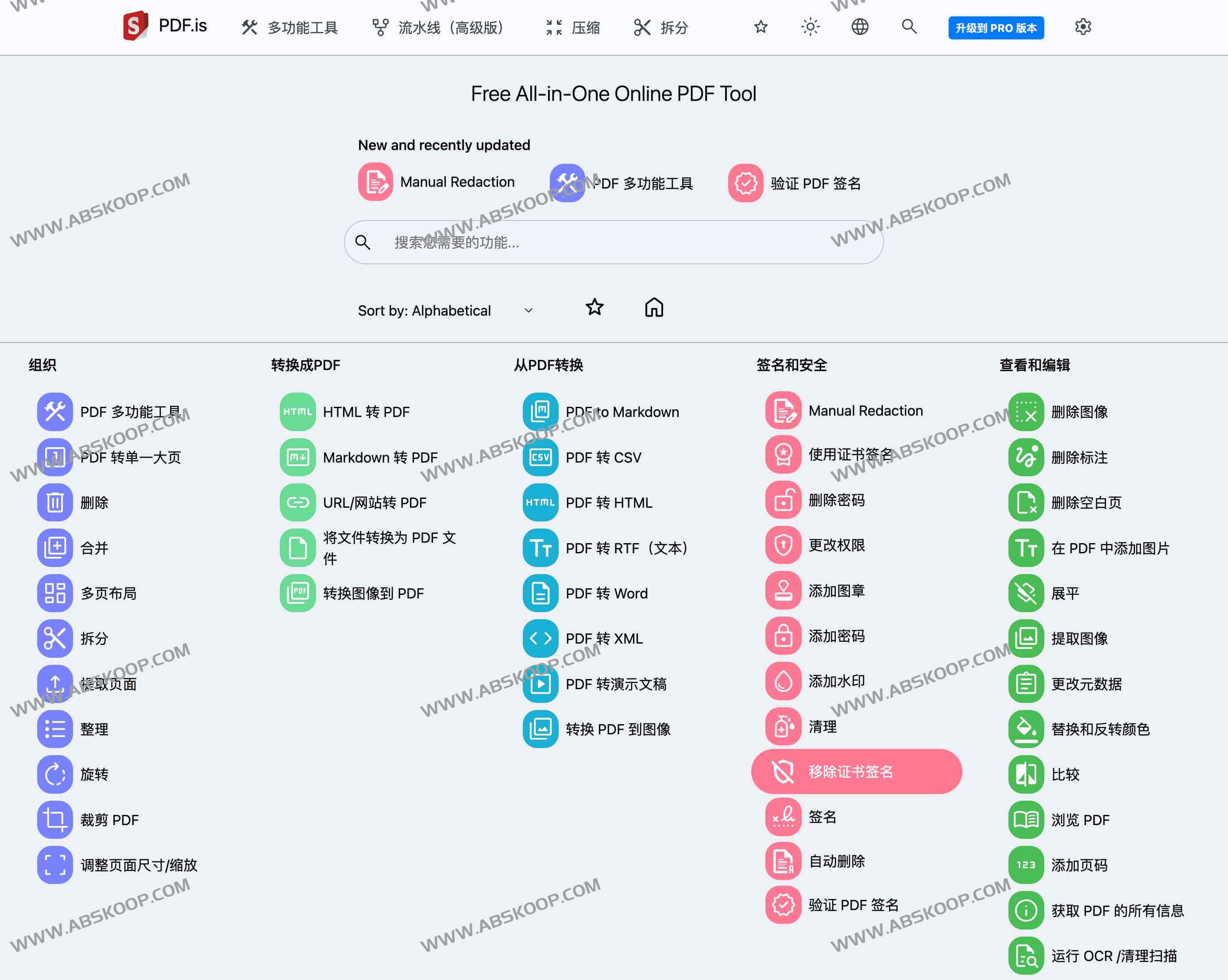 PDF.is 是一款功能全面的在线 PDF 工具,支持多种 PDF 处理和转换功能,适用于个人和专业用户。它提供 PDF 合并、拆分、压缩、格式转换(如 PDF 转 Word、Excel、Markdown、HTML 等)、页面编辑、OCR 文字识别、电子签名、安全加密等多种实用工具。此外,高级版本支持自动页面拆分、智能重命名、颜色调整等进阶功能。无需下载软件,用户可直接在浏览器中完成各种 PDF 操作,提高文档管理效率。