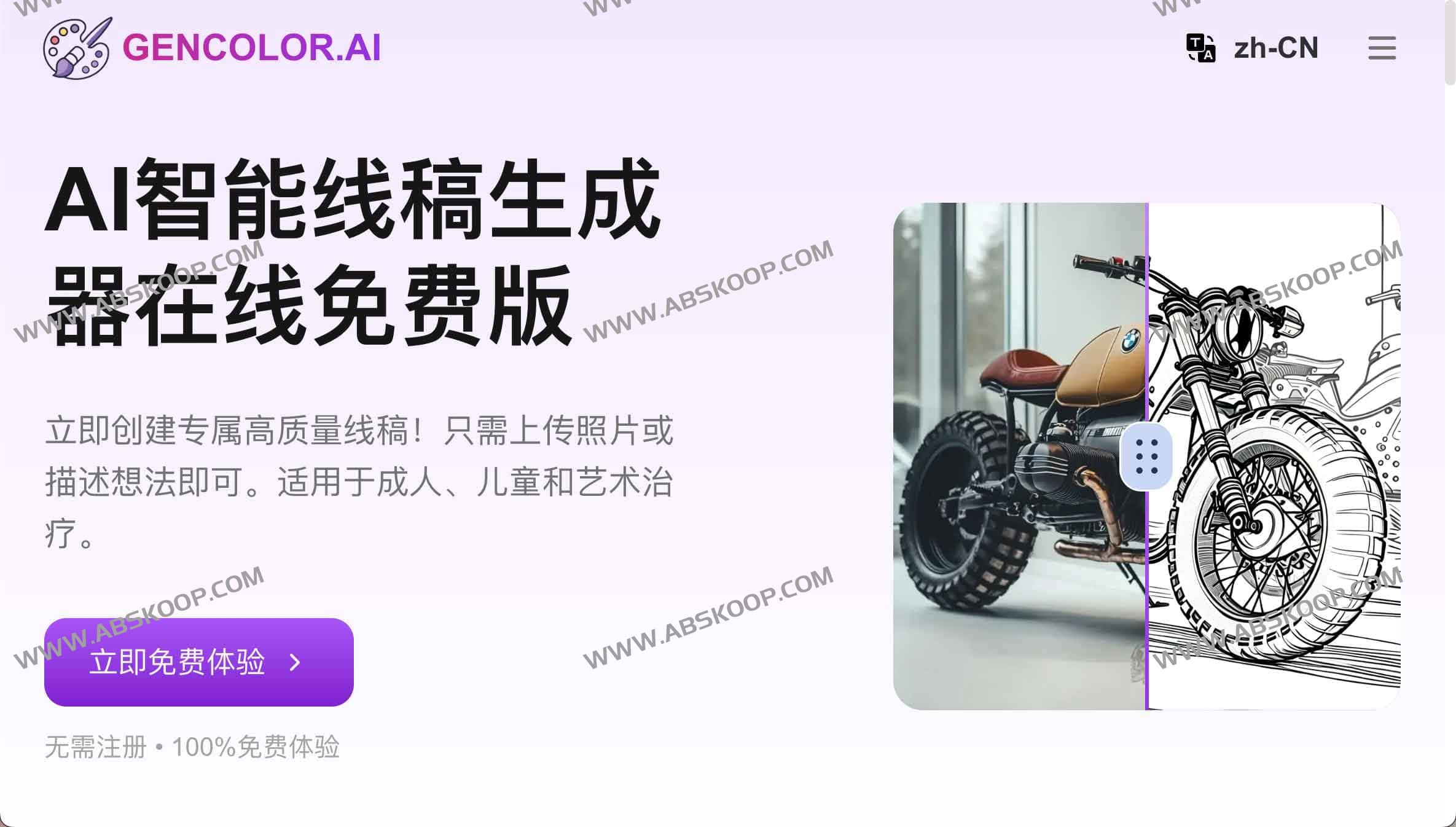 GenColor AI是一款专业的AI智能线稿生成工具,能够将照片或文字描述转换为高质量的可打印线稿。用户无需注册即可免费体验,可应用于个性化设计、创意项目和艺术创作。支持照片转线稿和文字转线稿两种模式,并提供多种风格选择,确保清晰精美的细节呈现。生成的线稿可下载为高分辨率PDF或PNG格式,适用于家庭打印或专业用途。平台兼容多种设备,并提供高级功能和商业授权选项,满足不同用户的需求,同时采用先进算法保障面部精准度和背景处理效果。