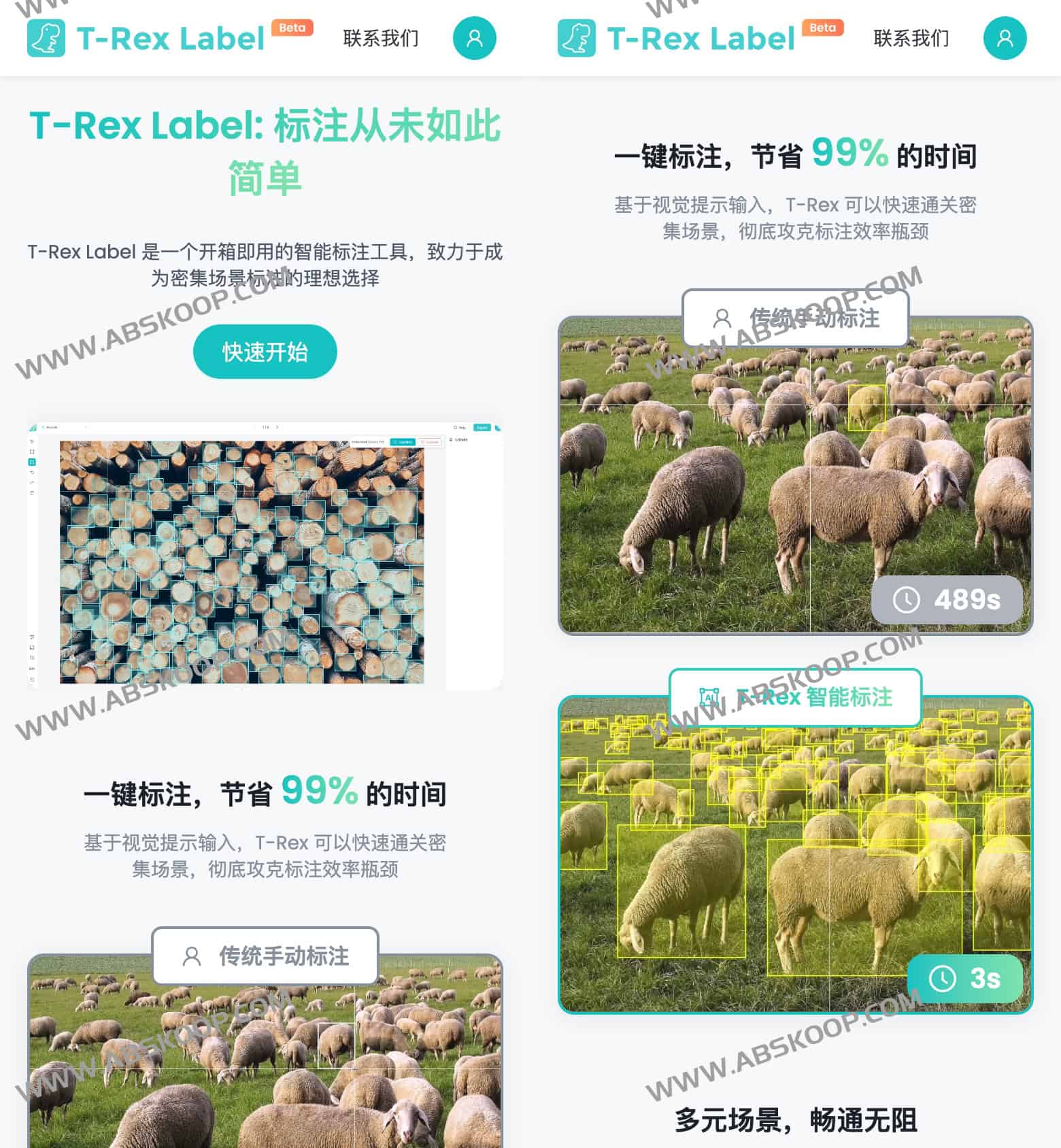 T-Rex Label 是一款智能 AI 标注工具,专为密集场景和复杂环境的数据标注设计,适用于农业、医疗、电子、建筑、零售、物流、交通等多个行业。其核心功能包括一键标注、零样本检测和视觉提示注释,可在无需微调的情况下自动生成高质量标注数据。相比传统手动标注,T-Rex Label 可将标注时间缩短 99%,大幅提高工作效率。该工具帮助机器学习工程师、数据分析师和研究人员快速创建高质量数据集,加速 AI 训练与部署。