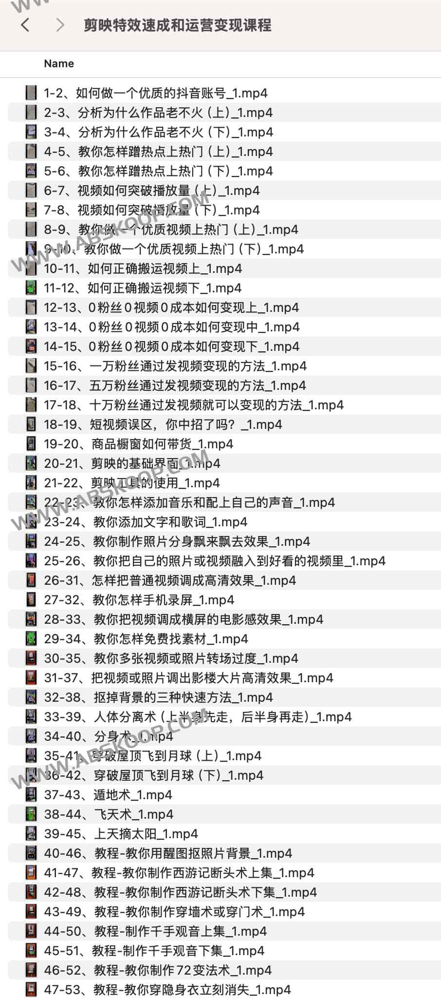 剪映特效速成和运营变现课程,夸克网盘课程。