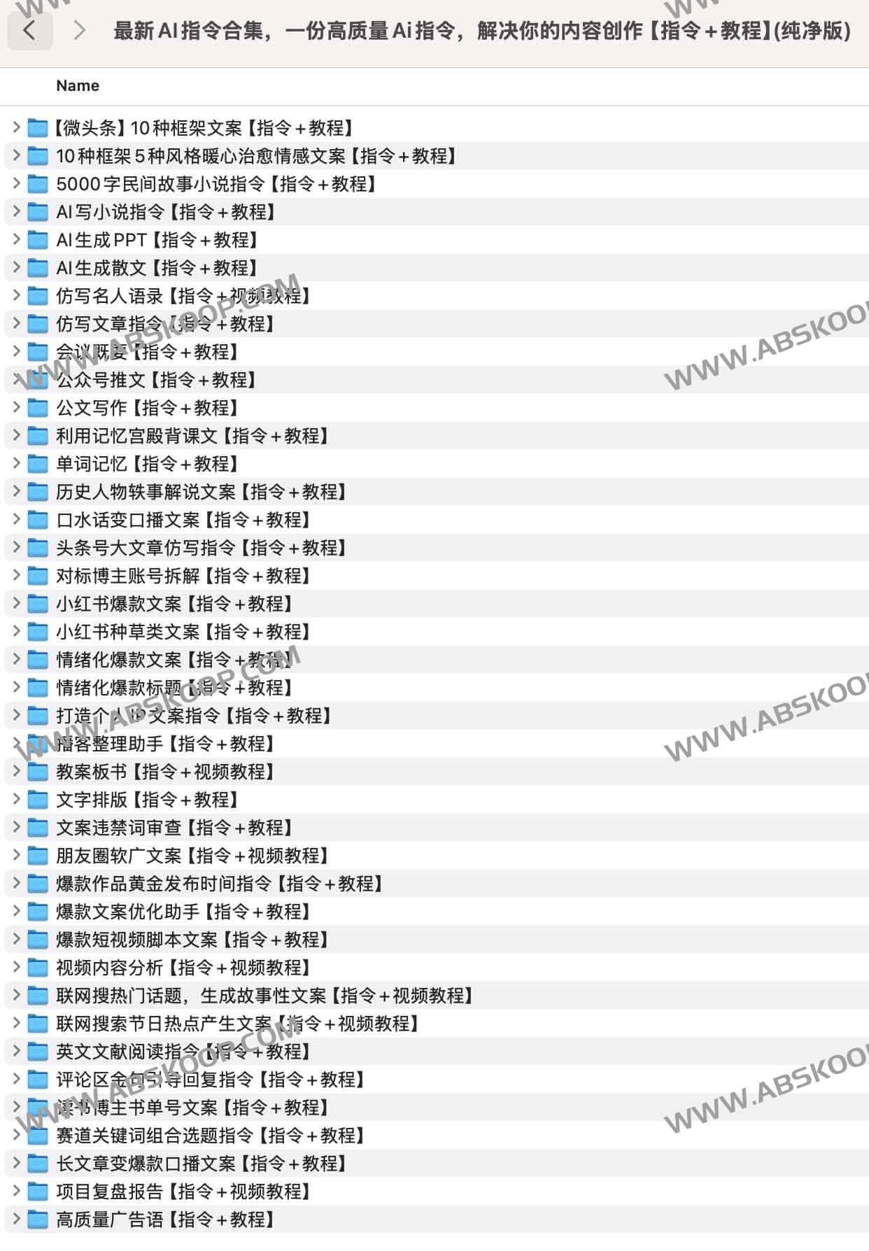 最新AI指令合集,一份高质量Ai指令,解决你的内容创作【指令+教程】(纯净版),涵盖从短视频脚本、广告文案、公文写作到AI生成PPT、小说、散文等多种类型。还包含热点文案生成、评论区互动、情绪化标题、文案排版等优化工具。无论是内容创作者、品牌运营者,还是学习者,都能借助这些指令高效提升写作质量和创作效率,夸克网盘资源。