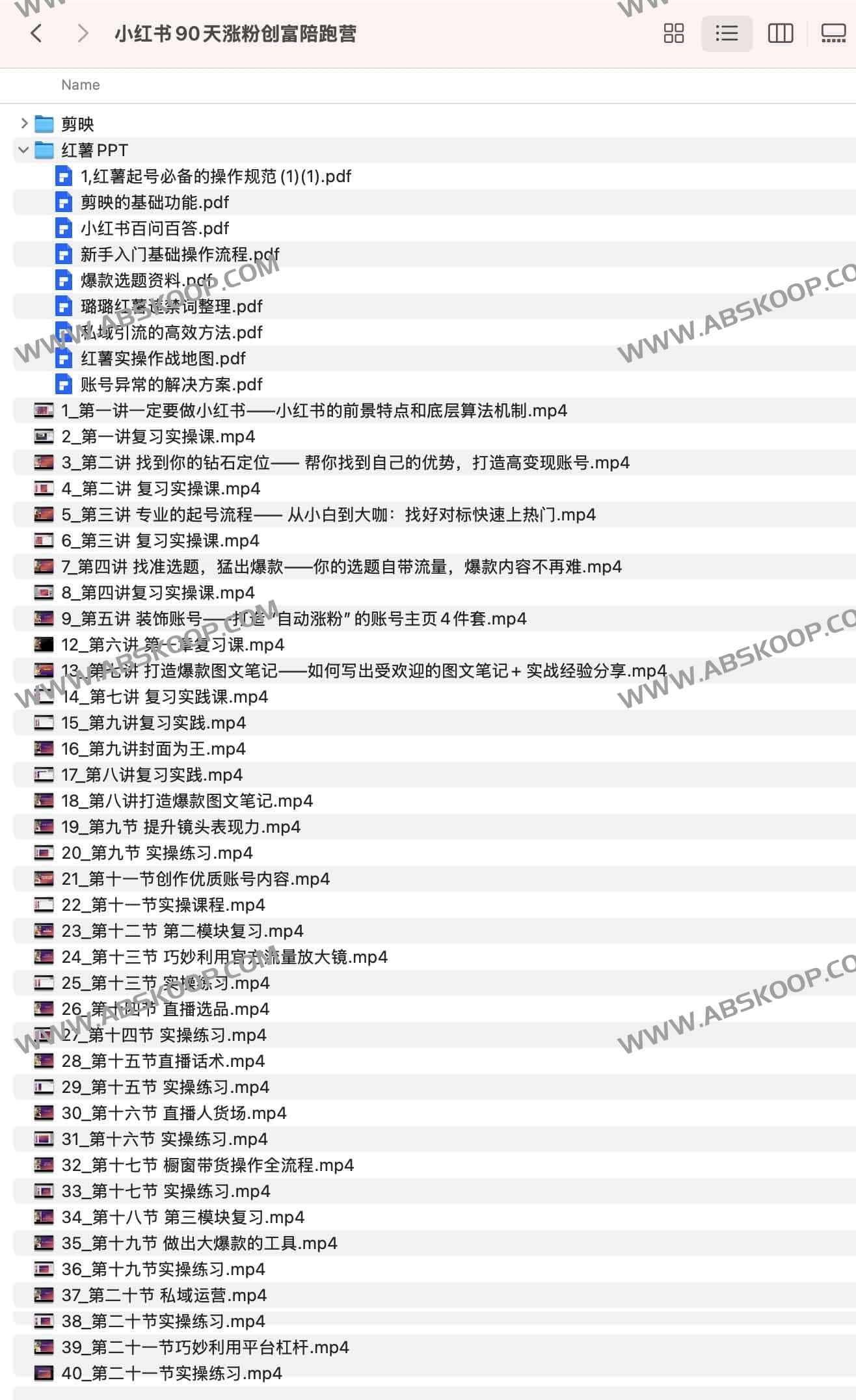 小红书90天涨粉创富陪跑营,夸克网盘课程。