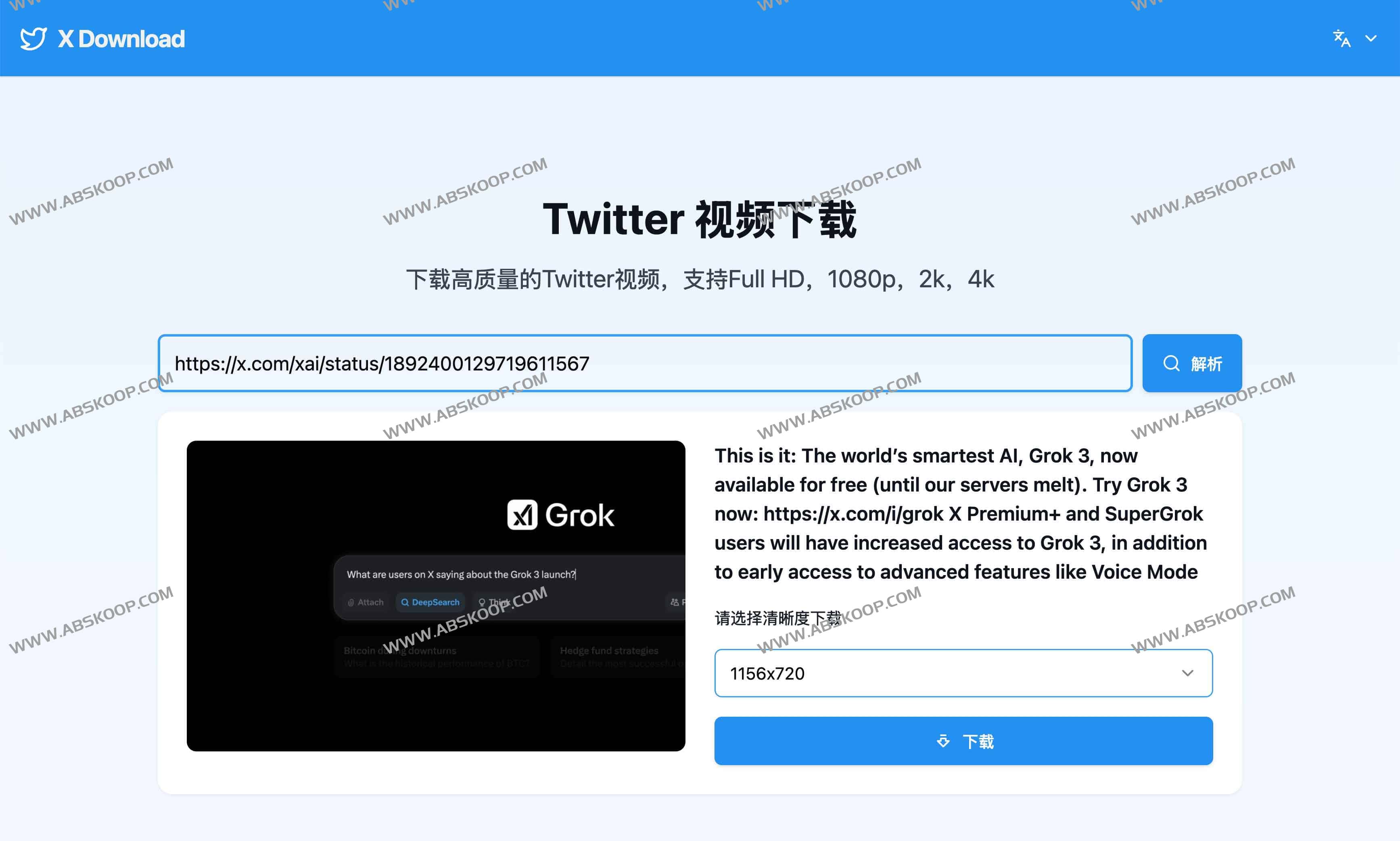 X Download 推特视频下载器是一款专为中文用户打造的免费视频下载工具,它能让你在几秒钟内轻松将Twitter或X平台上的视频一键转换成高清MP4格式,无需安装软件即可在手机和电脑上离线观看。该工具利用先进的多线程技术实现极速下载,保证视频质量支持Full HD、1080p、2k乃至4k,同时提供强大的视频处理引擎支持超过50种格式的转换,并全程加密传输确保数据安全,无论是珍藏热门片段还是保存重要时刻,都能轻松搞定,带给你最便捷、最快速的下载体验。
