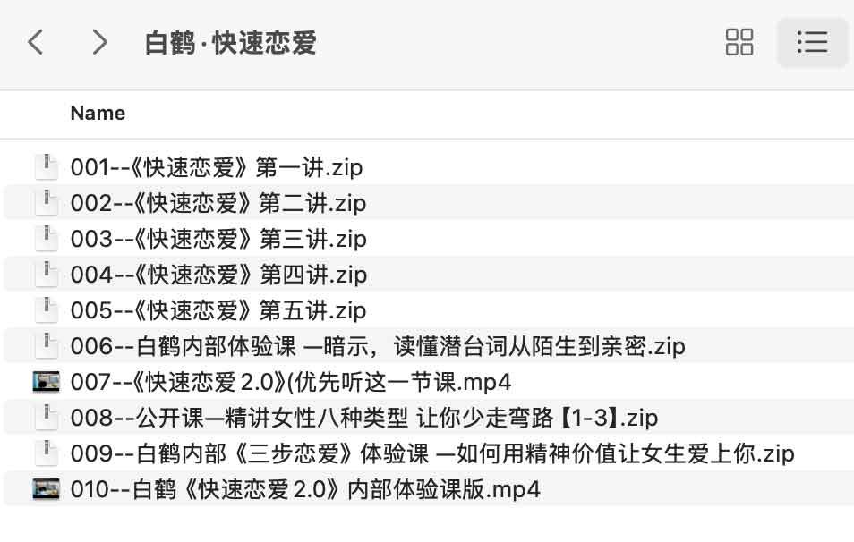 《白鹤·快速恋爱》是一套专为单身男女设计的恋爱课程,旨在帮助学员快速掌握高效的恋爱策略和情感沟通技巧。课程内容涵盖从初步接触到建立亲密关系的多个关键环节,包括如何捕捉恋爱信号、解读潜台词以及运用精神价值吸引异性等实战技巧。该系列课程分为多个讲座和内部体验课,通过系统性的教学视频和课件,帮助学员了解不同女性类型,掌握恋爱中常用的三步法则和快速恋爱策略,从而在实际约会中少走弯路,实现从陌生到亲密的转变。课程内容既有公开课精讲,也有内部深度体验,确保学员在恋爱实践中能迅速提升自我,轻松应对两性互动中的各种挑战,最终实现情感上的成功突破。