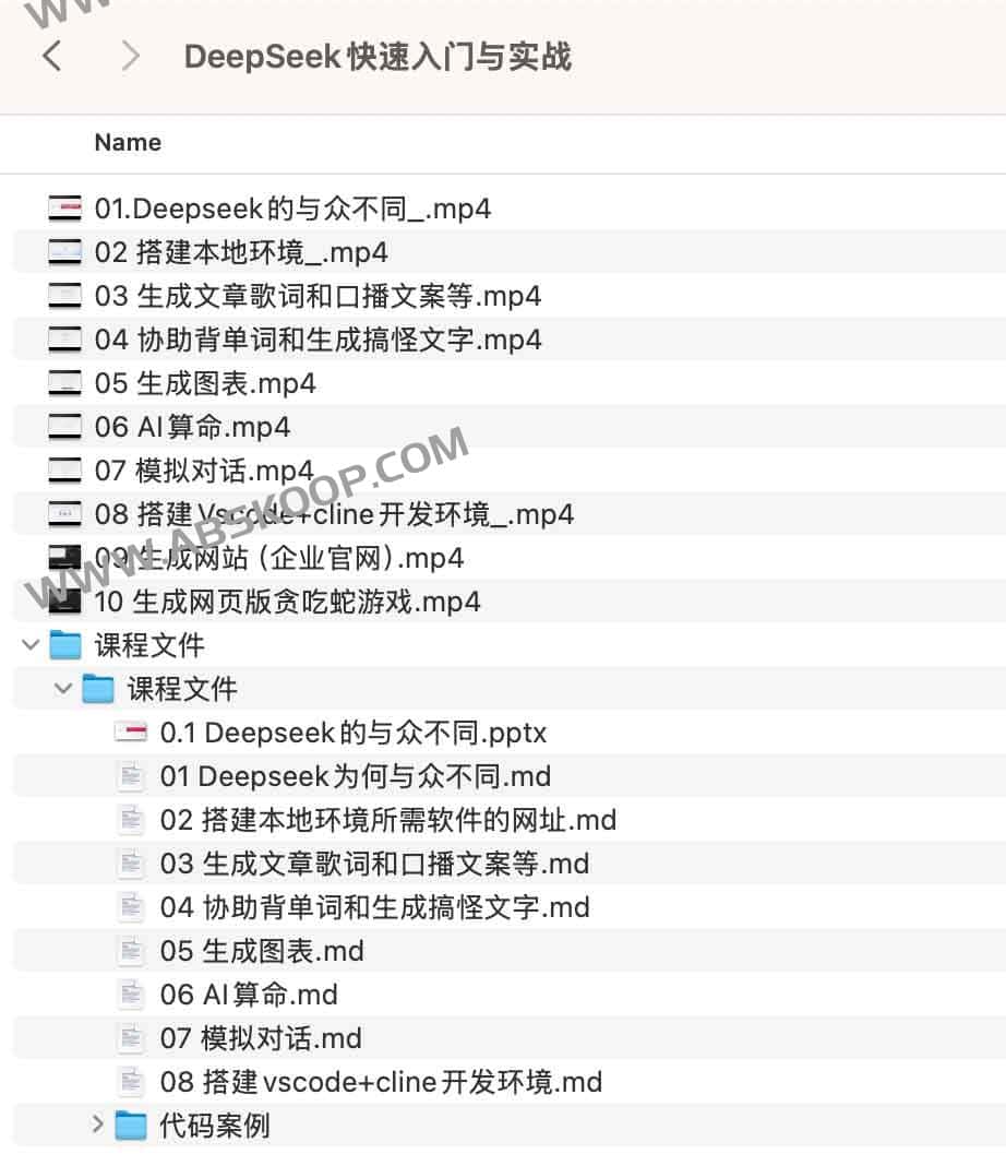 本课程全面解析DeepSeek的特点,提供实战视频讲解和配套资料。课程内容涵盖DeepSeek的核心优势、本地环境搭建、生成文章歌词及口播文案、辅助背单词和创作搞怪文字、图表生成、AI算命、模拟对话等实用场景。同时,课程延伸至搭建VSCode与cline开发环境,生成企业官网及网页版贪吃蛇游戏。配套PPT、Markdown文档和代码案例助力学习者系统掌握AI生成与开发技能。