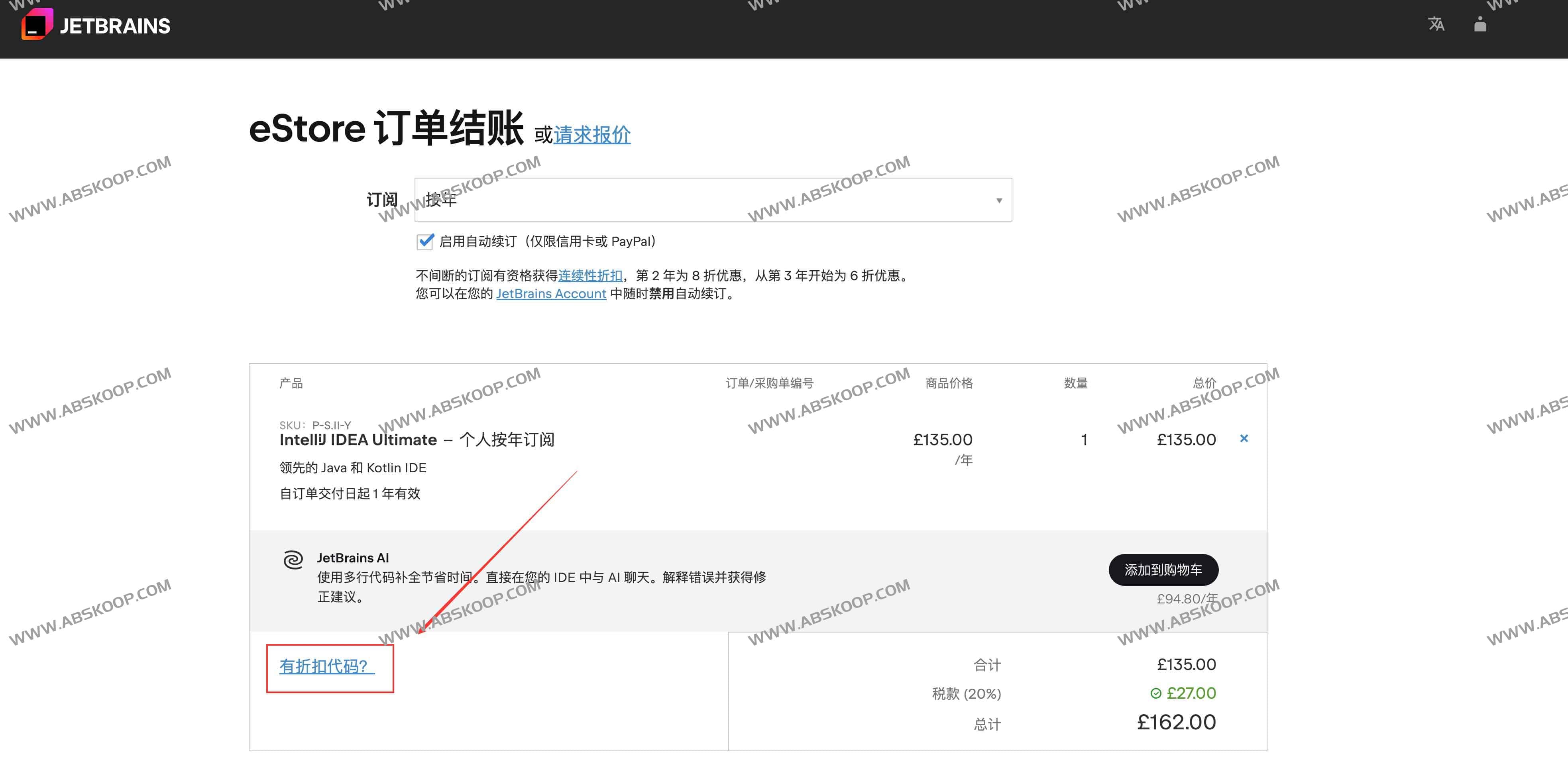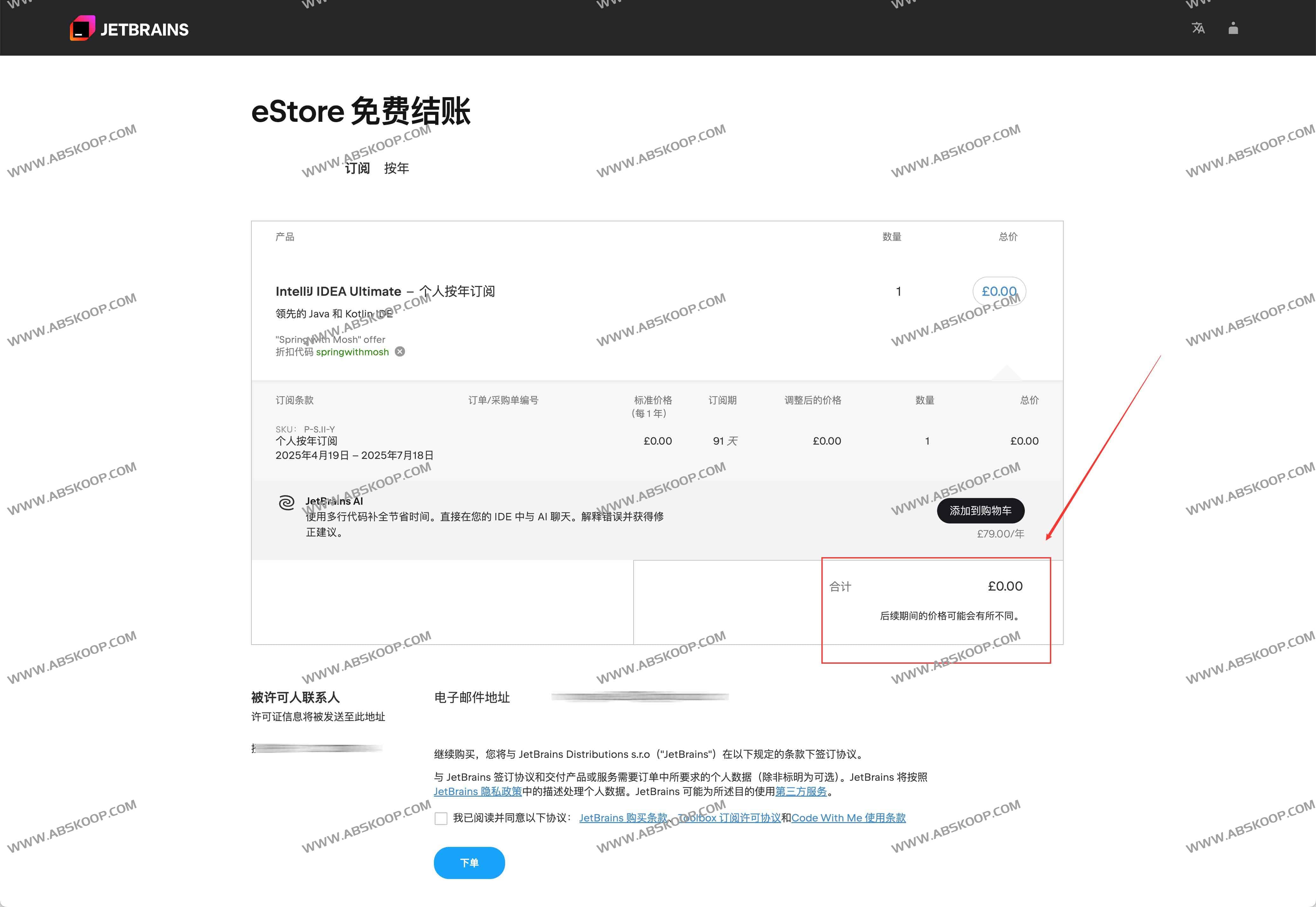 下单地址(失效时间未知):https://www.jetbrains.com/idea/buy/?section=personal&billing=yearly