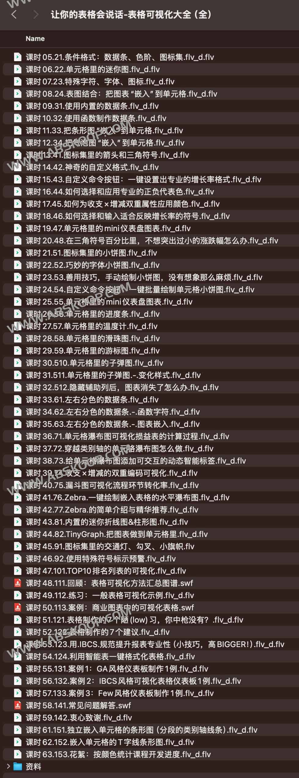 让你的表格会说话-表格可视化大全(全),夸克网盘课程。这套系列课程以“让你的表格会说话”为主题,分为五大模块超过60个课时,深入剖析单元格可视化方法。条件格式章节覆盖数据条、色阶、图标集的内置与函数制作,帮助用户无需外部图表就能呈现增长率、正负对比与分段标识;迷你图板块介绍单元格内的折线、柱形、气泡、小饼图与仪表盘图表,让数据走势与占比一目了然。