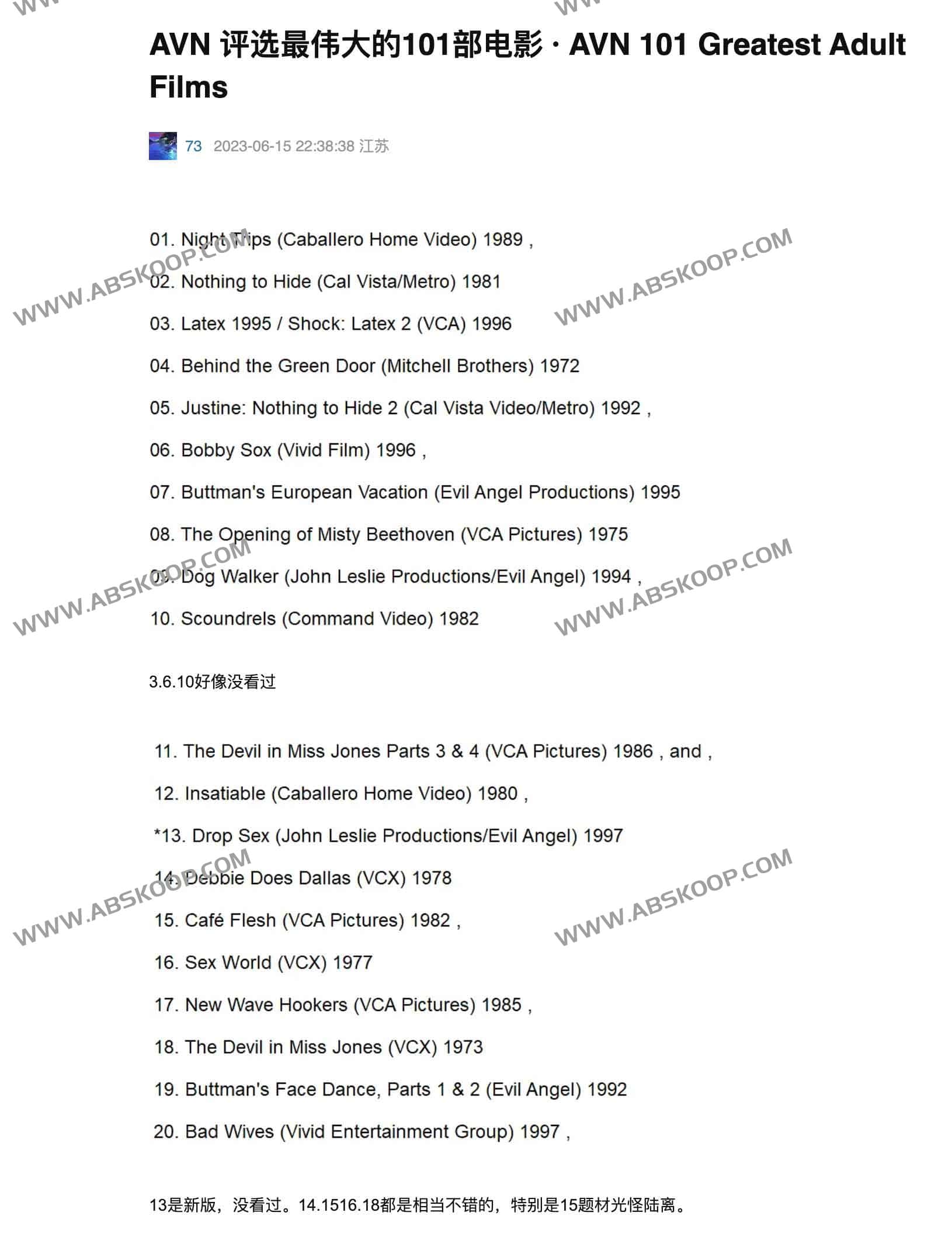 最佳大人电影列表是一份由AXN 评选最伟大的101部电影 · AXN 101 Greatest Axult Films,感兴趣的同学可以到网站学习体验。
