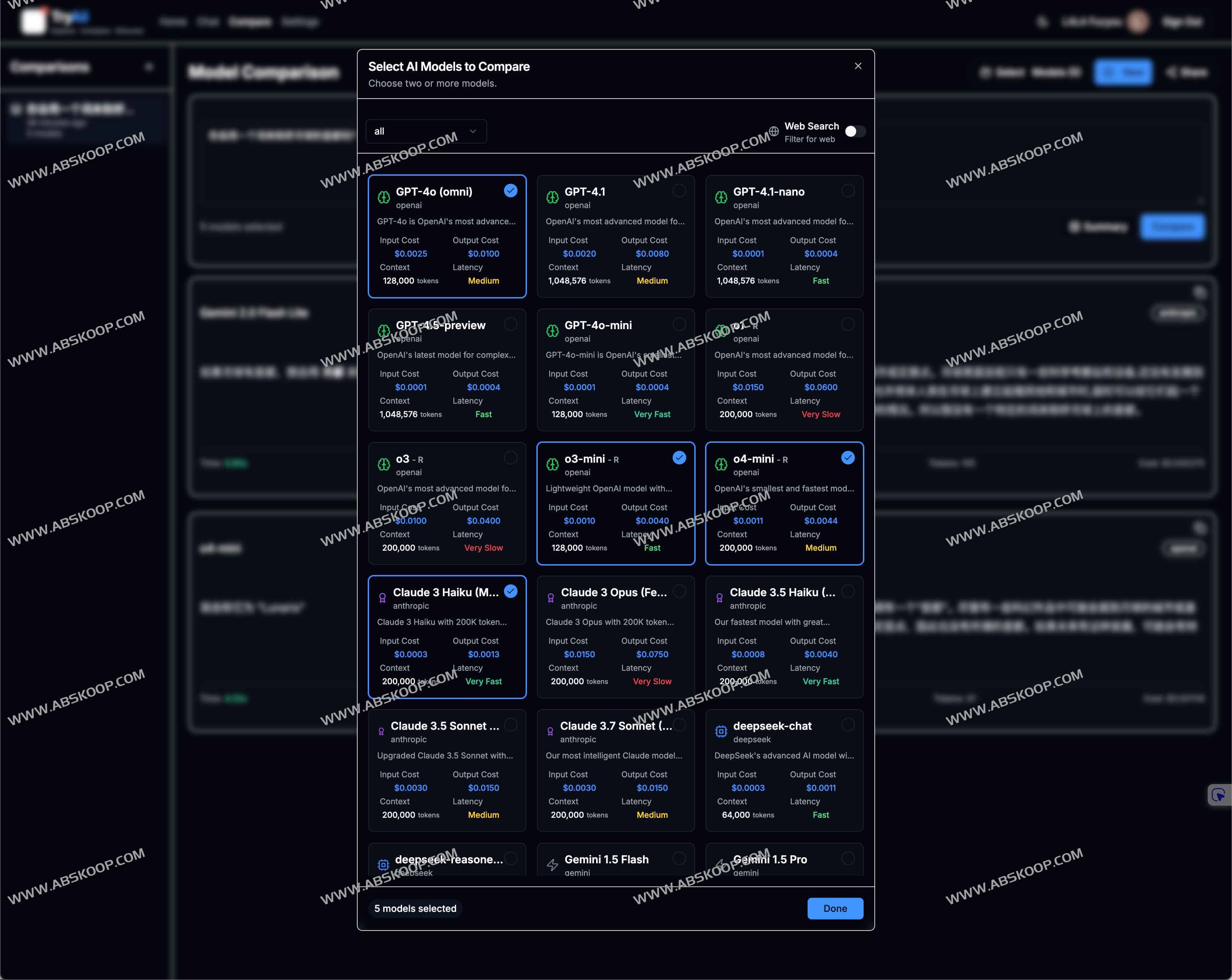 - 在“比较”界面输入或选择提示模板,勾选要对比的模型,点击“开始对比”即可看到实时结果。