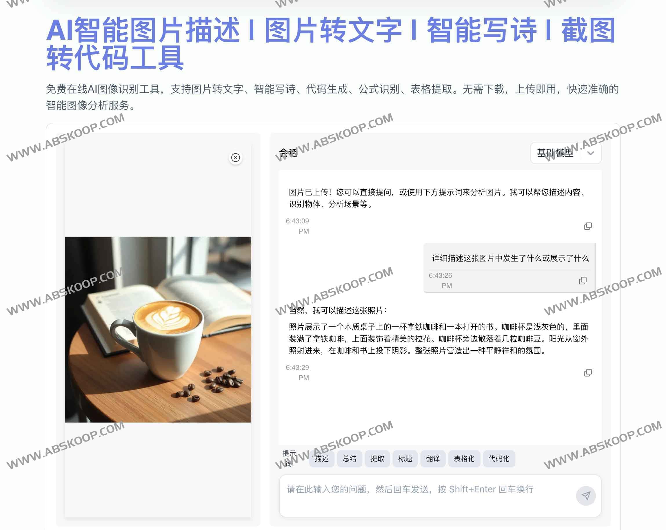 AI智能图片描述 | 图片转文字 | 智能写诗 | 截图转代码工具